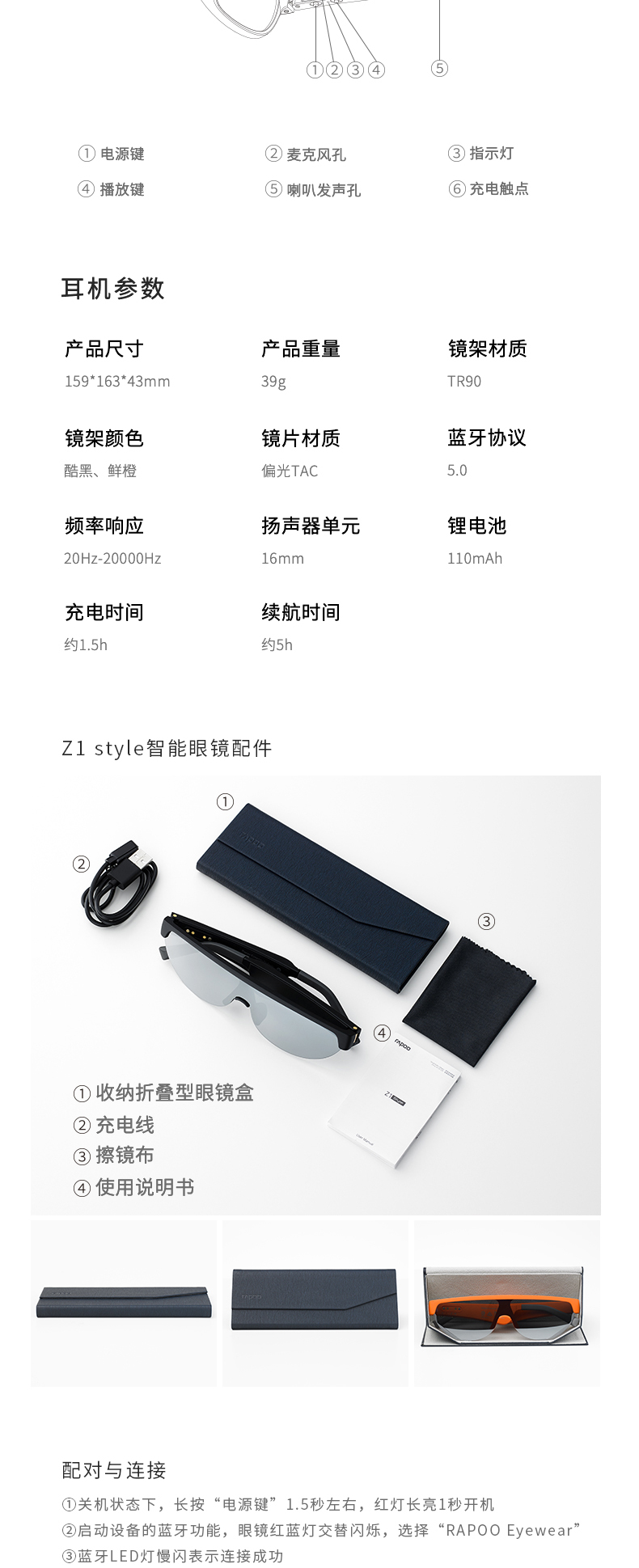 雷柏(Rapoo)智能音频眼镜 Z1 style