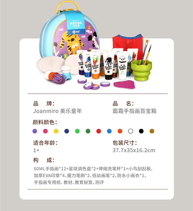 美乐 儿童手指画颜料无毒可水洗幼儿绘画颜料 涂鸦手指画颜料套装