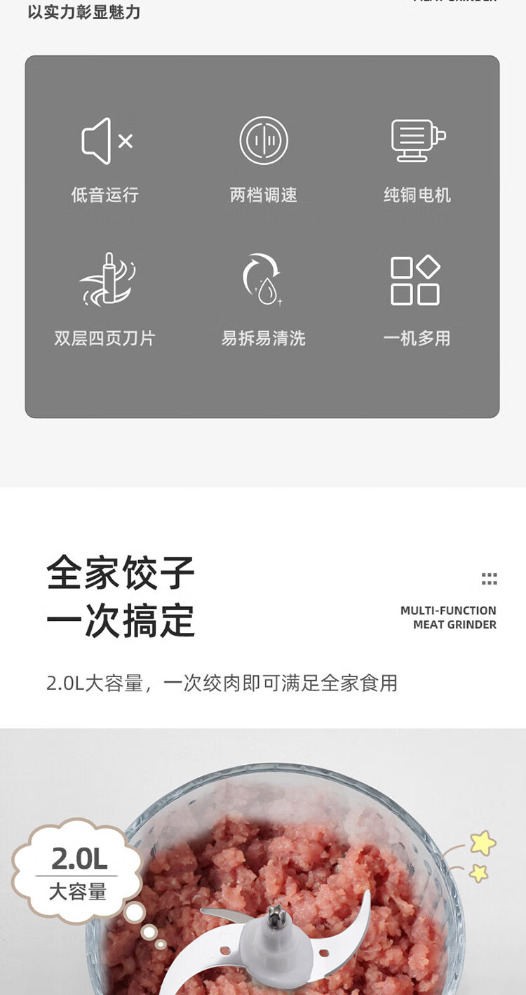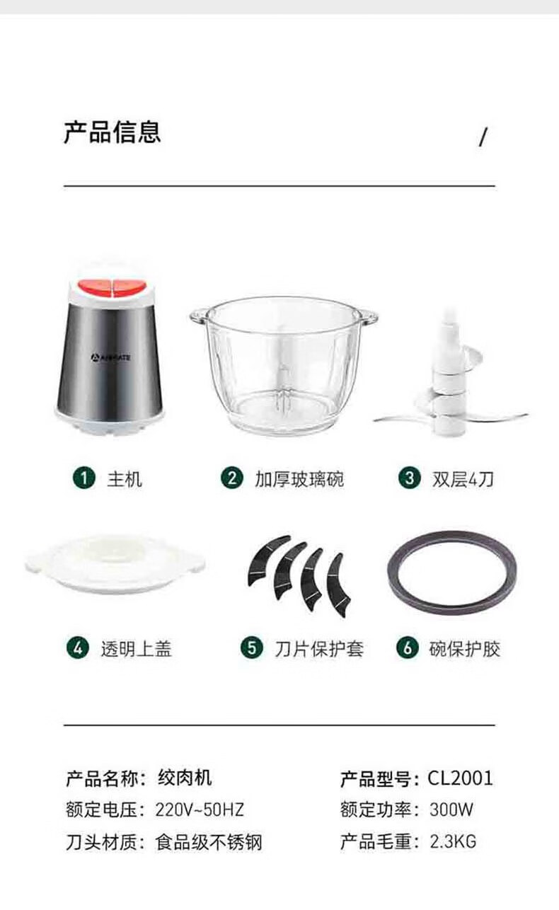 艾美特(AIRMATE)多功能搅拌机绞肉机 绞肉机CL2001