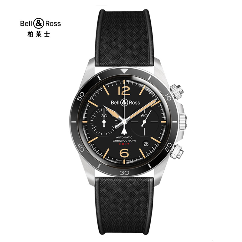 Bell & Ross 柏莱士 全自动机械手表男士黑色精钢计时腕表 BRV294-HER-ST/SRB