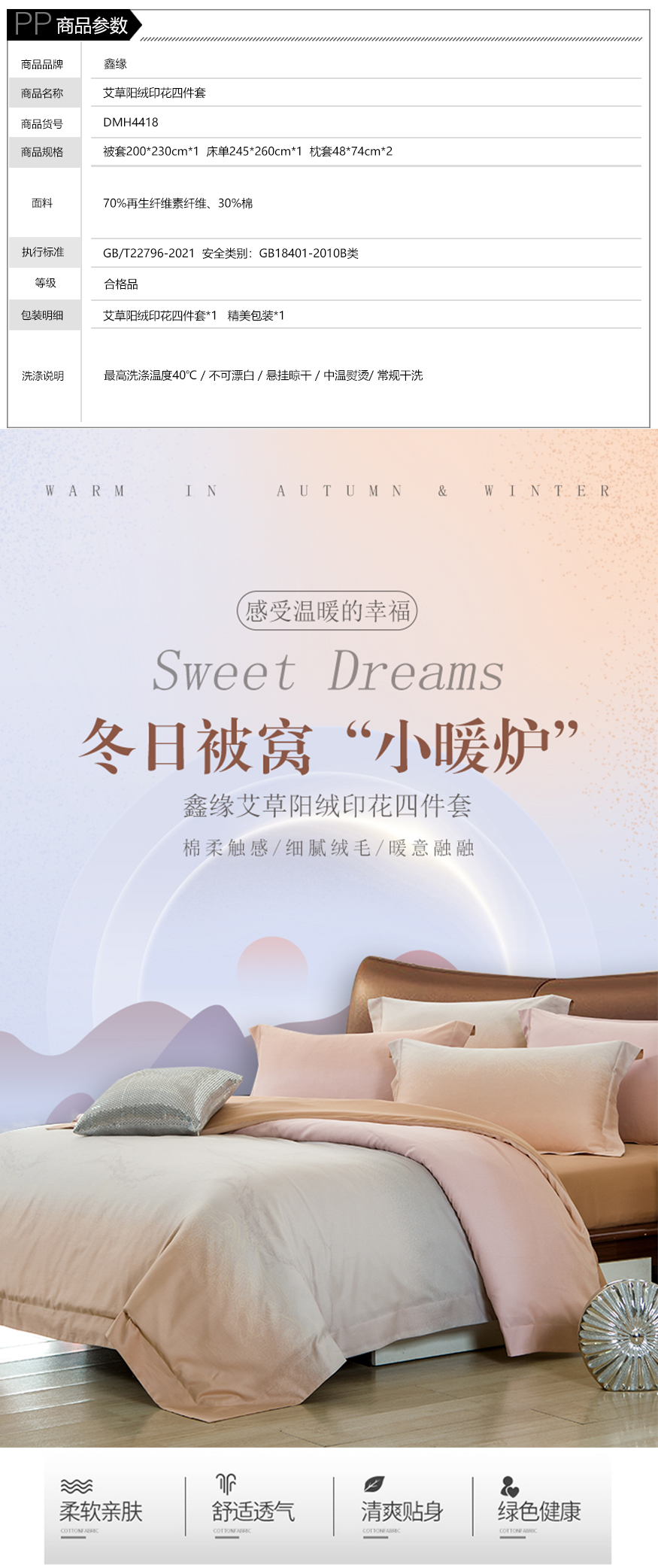 鑫缘 艾草阳绒印花四件套 DMH4418