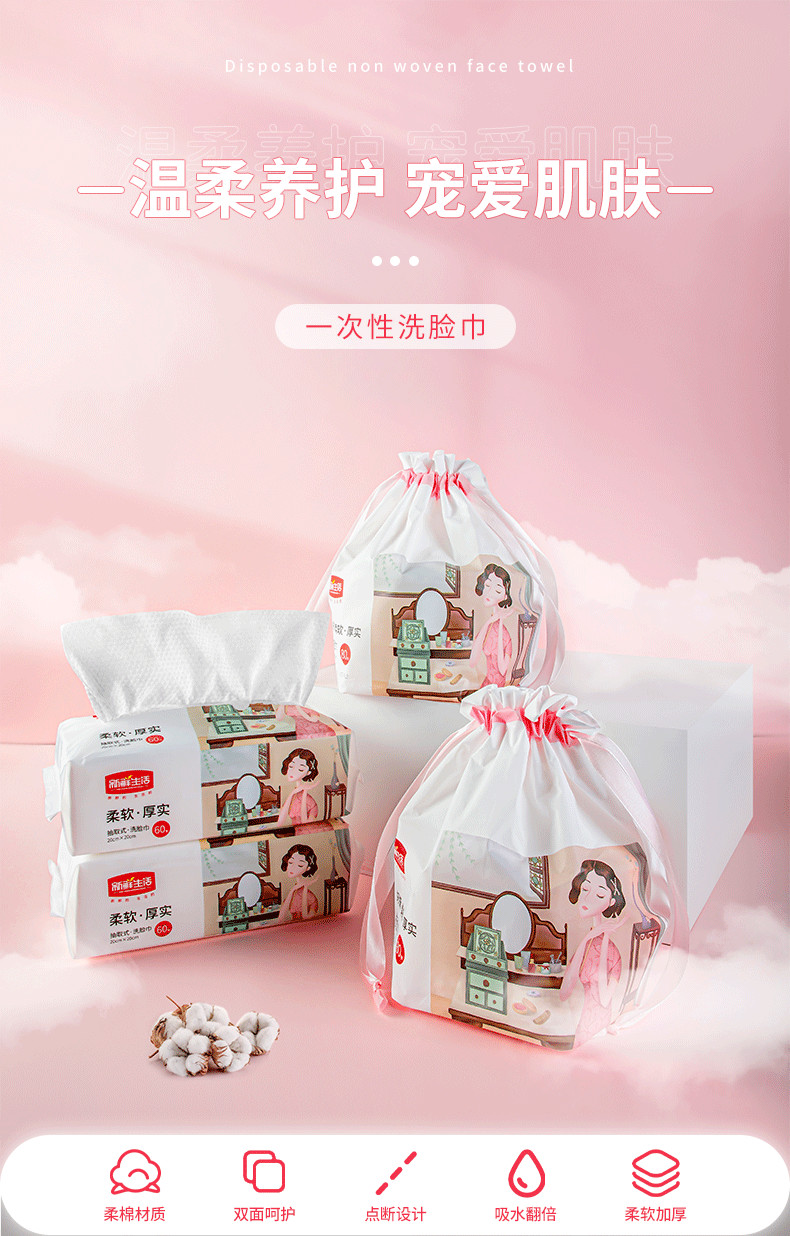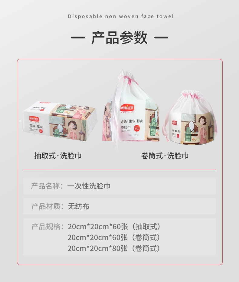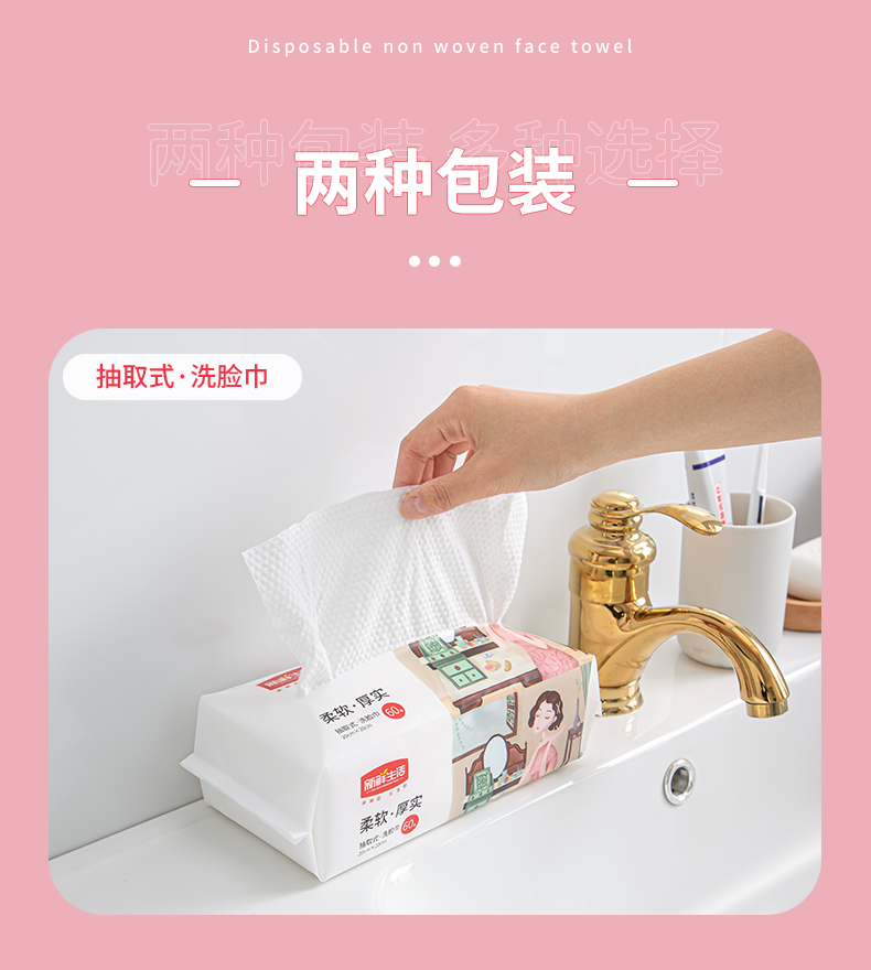 新鲜生活抽取式洗脸巾60张 柔棉材质 双面呵护 随用随抽 吸水翻倍 干净卫生 选用加厚无纺布耐撕拉 点断设计
