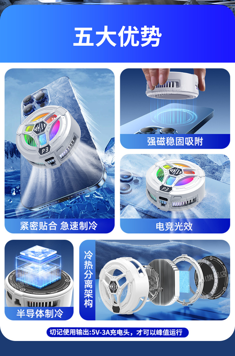 【三档调节快速制冷、磁吸背夹二合一设计】2026新款半导体手机散热器H9三档调节游戏制冷降温.TA