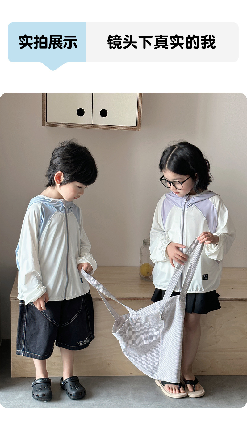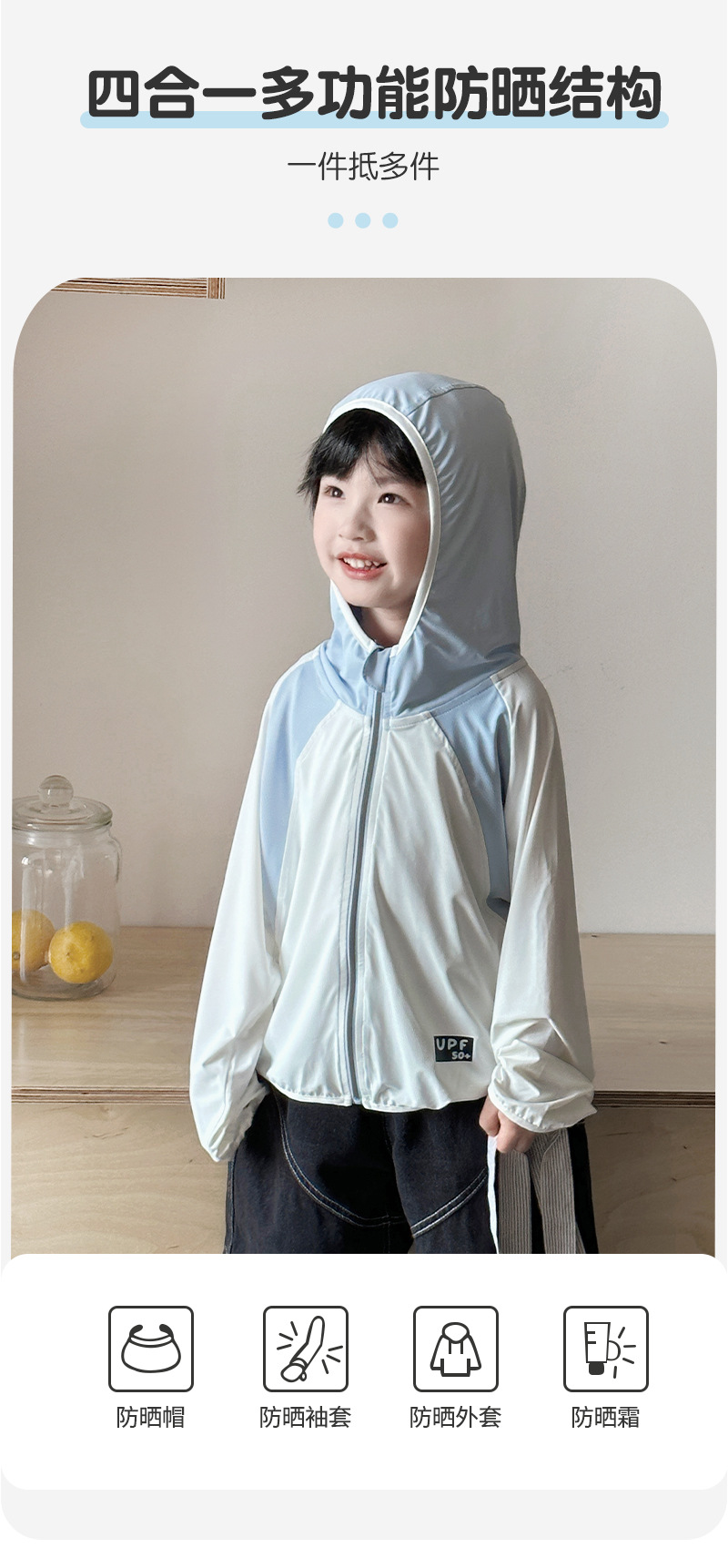儿童冰丝防晒衣 夏季防紫外线连帽遮阳透气男女童皮肤空调衣
