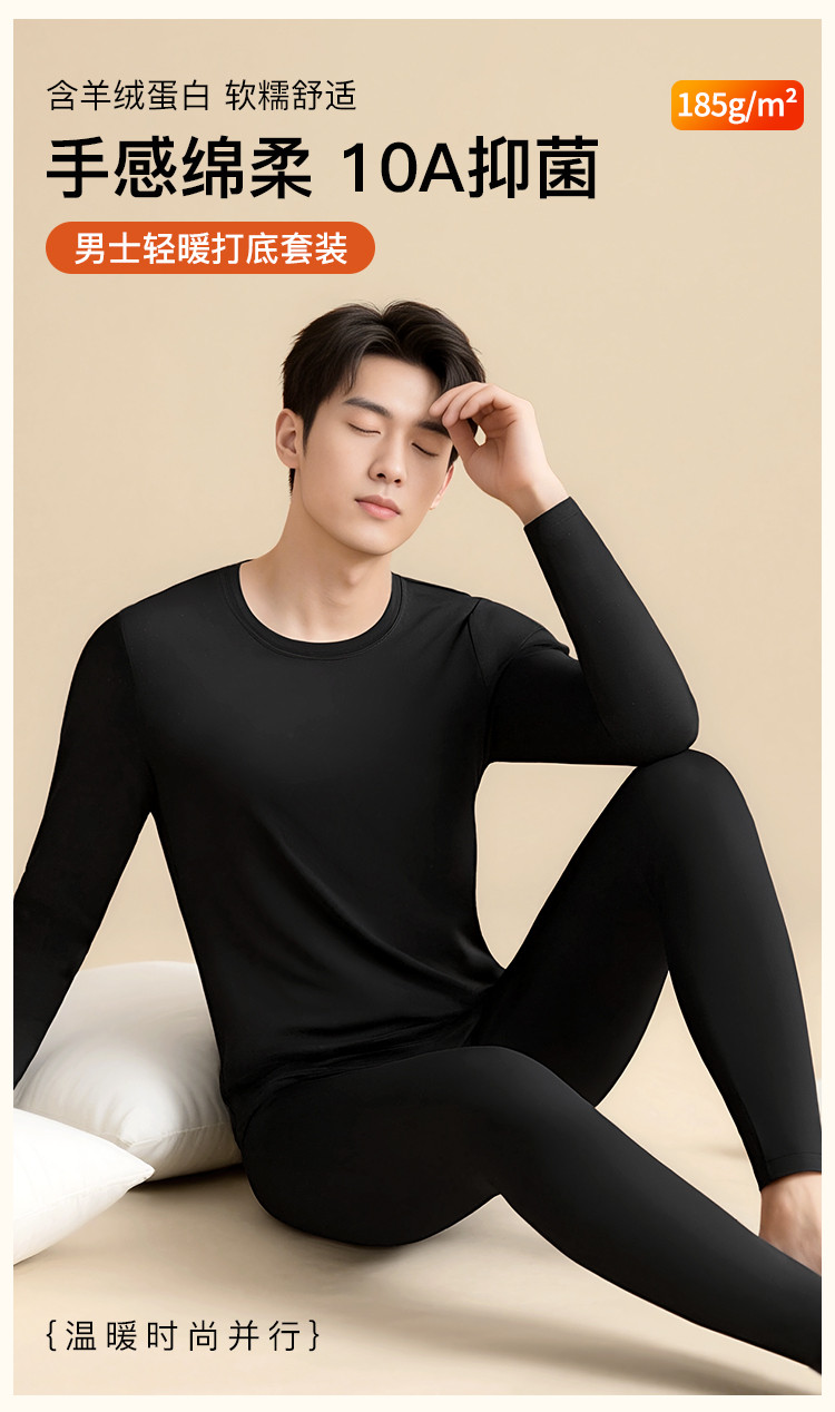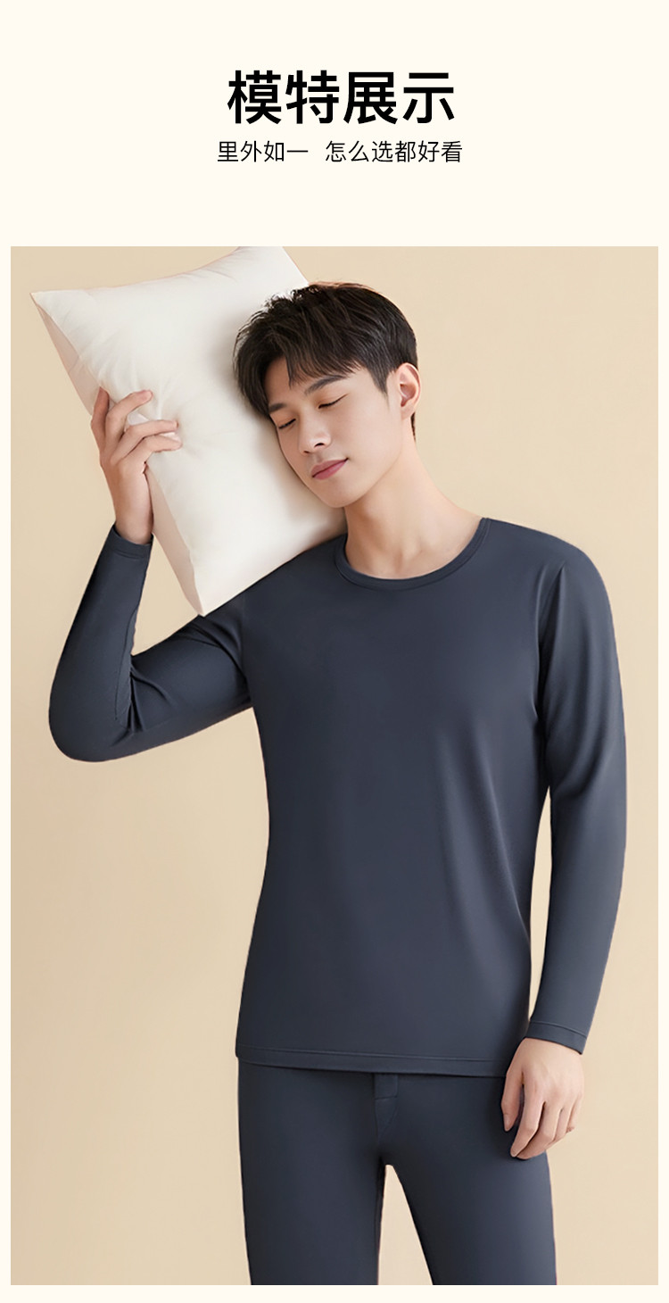 恒御暖盾 男士打底套装(VIP)10A抑菌【套装】秋冬含羊绒蛋白男圆领保暖套装