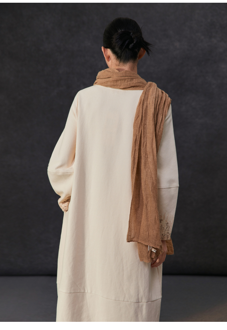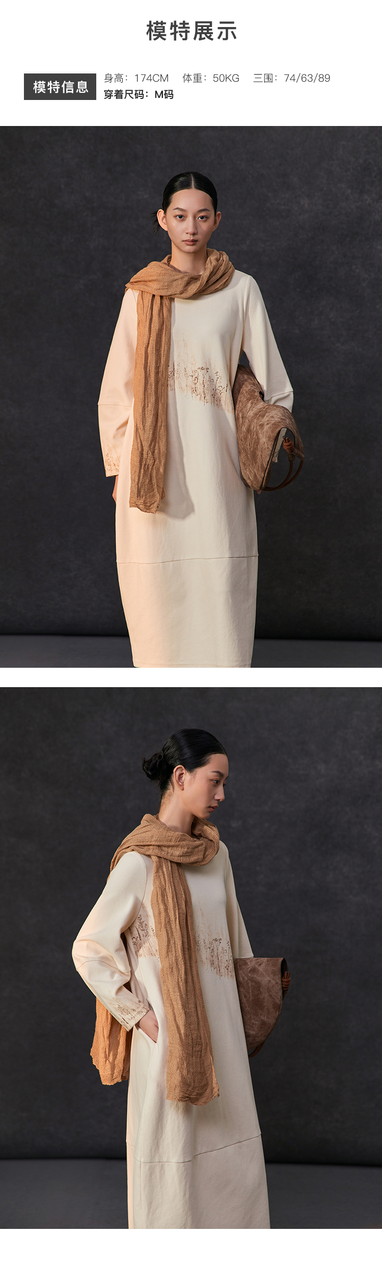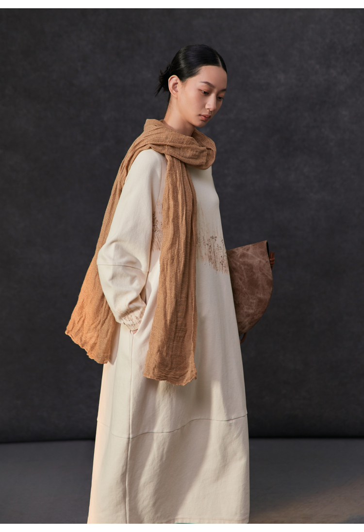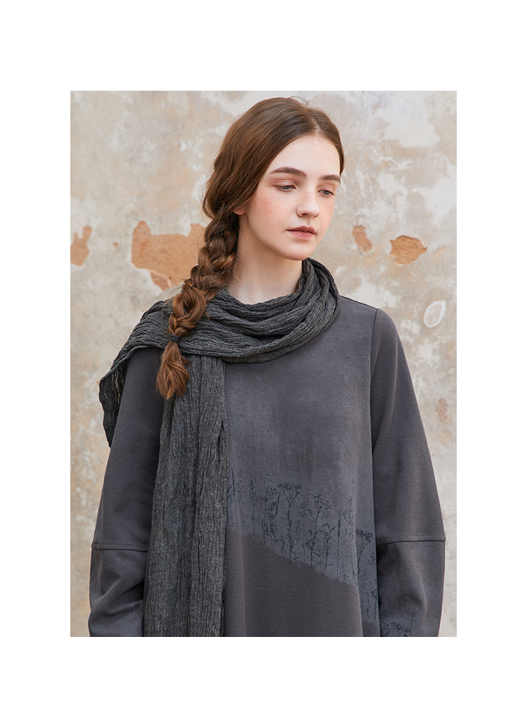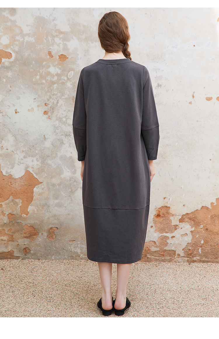 Famecoco植物拓印印花卫衣裙女圆领长袖宽松连衣长裙FAC1FA012