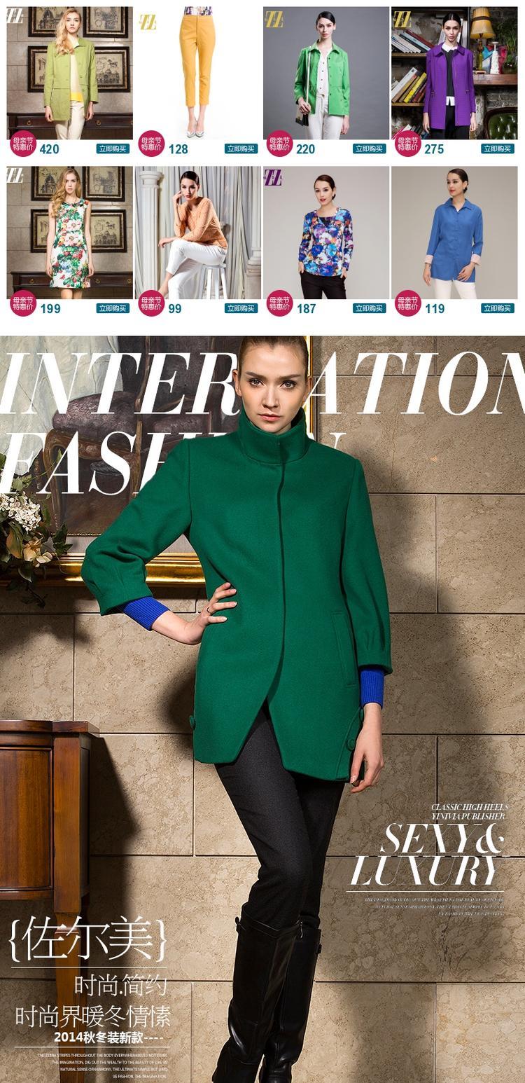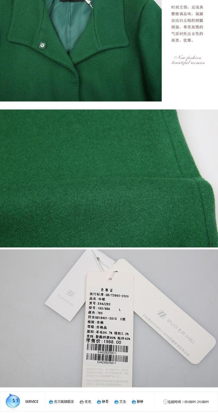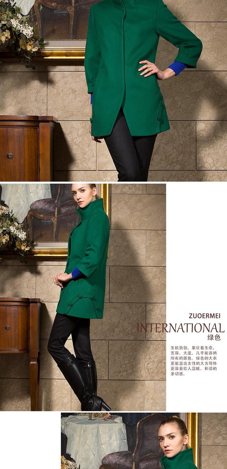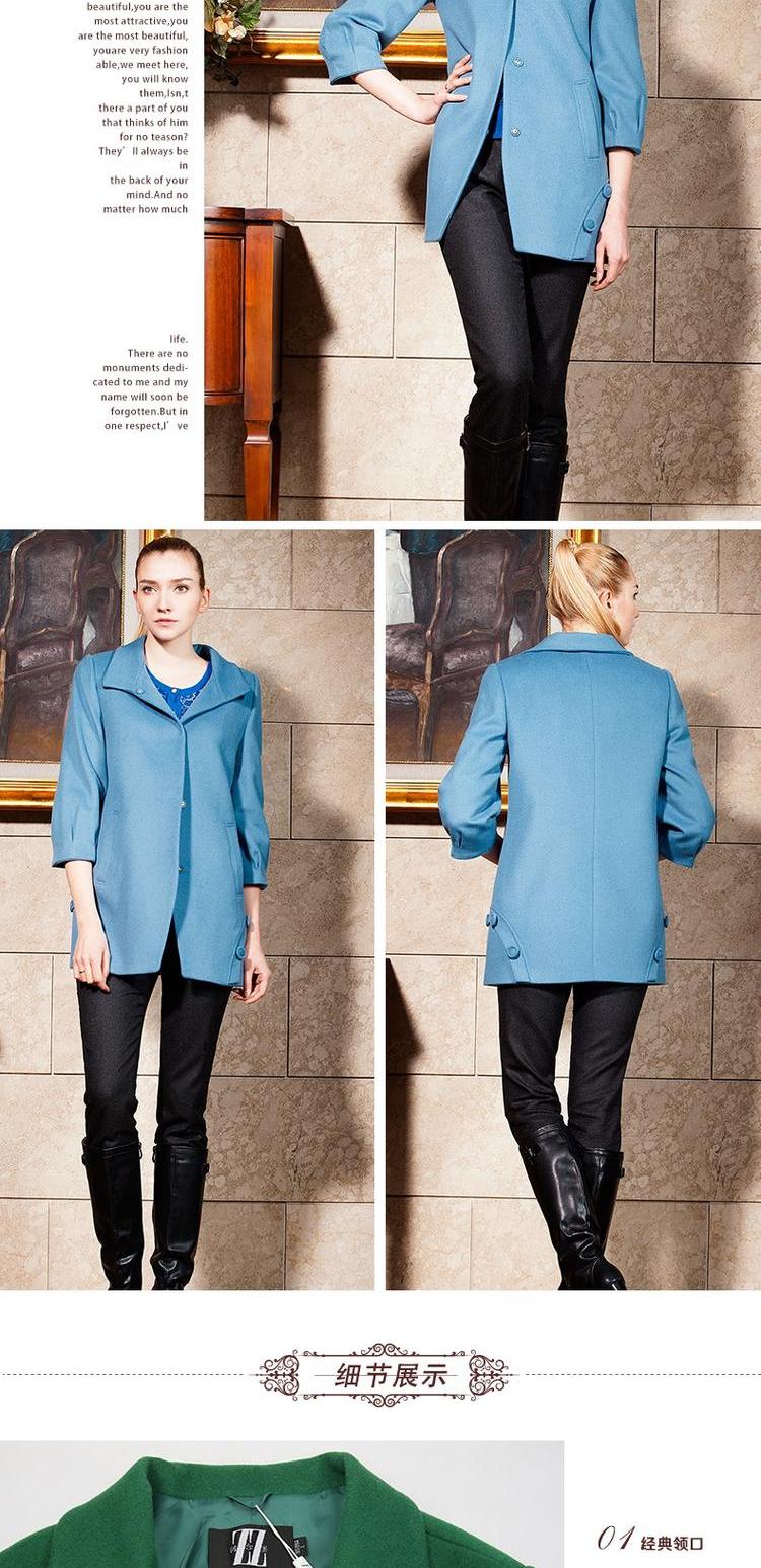 佐尔美春秋季女装纯色羊毛呢大衣修身显瘦七分袖暗扣外套E44ZZ63