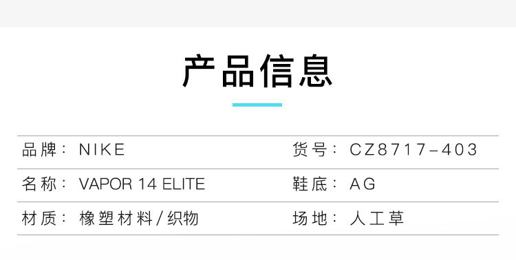 NIKE/耐克 VAPOR 14 ELITE AG刺客14高端低帮AG 欧洲杯配色男子足球鞋CZ8717403
