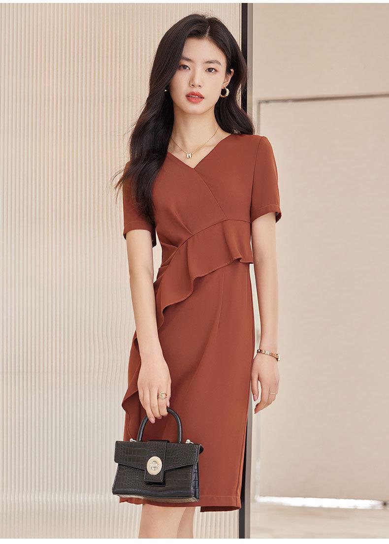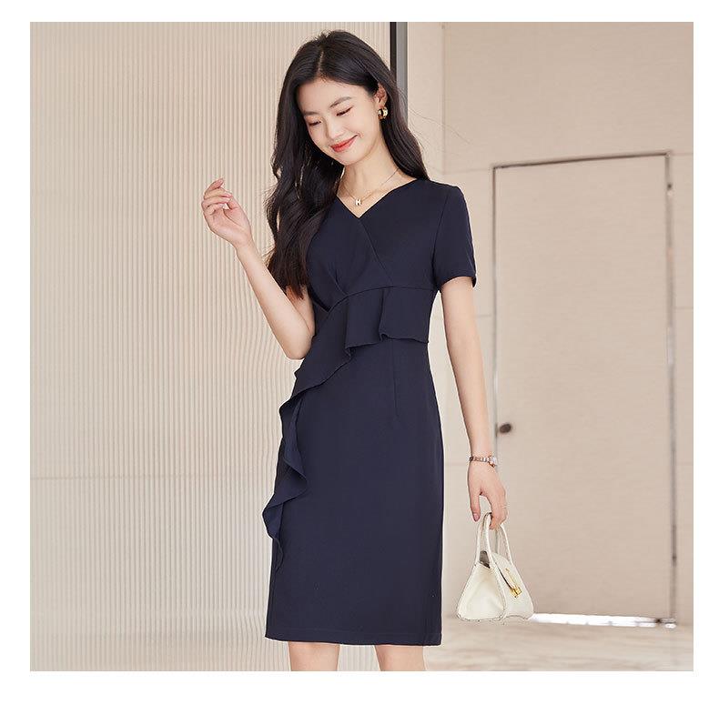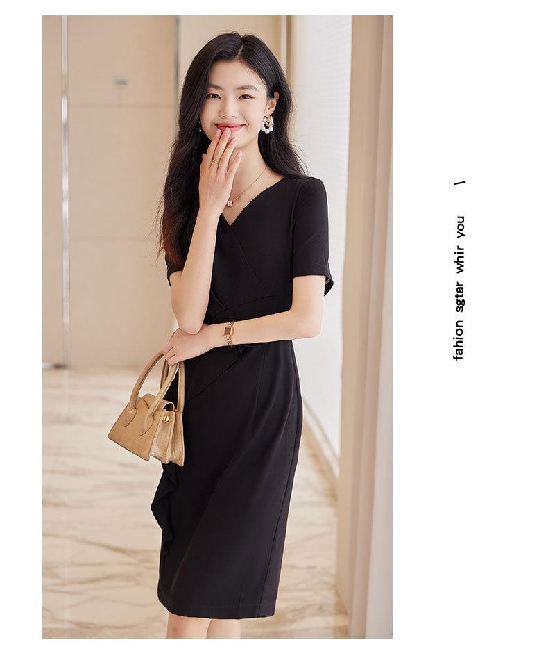 娜璐多 2023夏季新款连衣裙短袖紧身包臀时尚显瘦高腰一步裙女设计感OL女