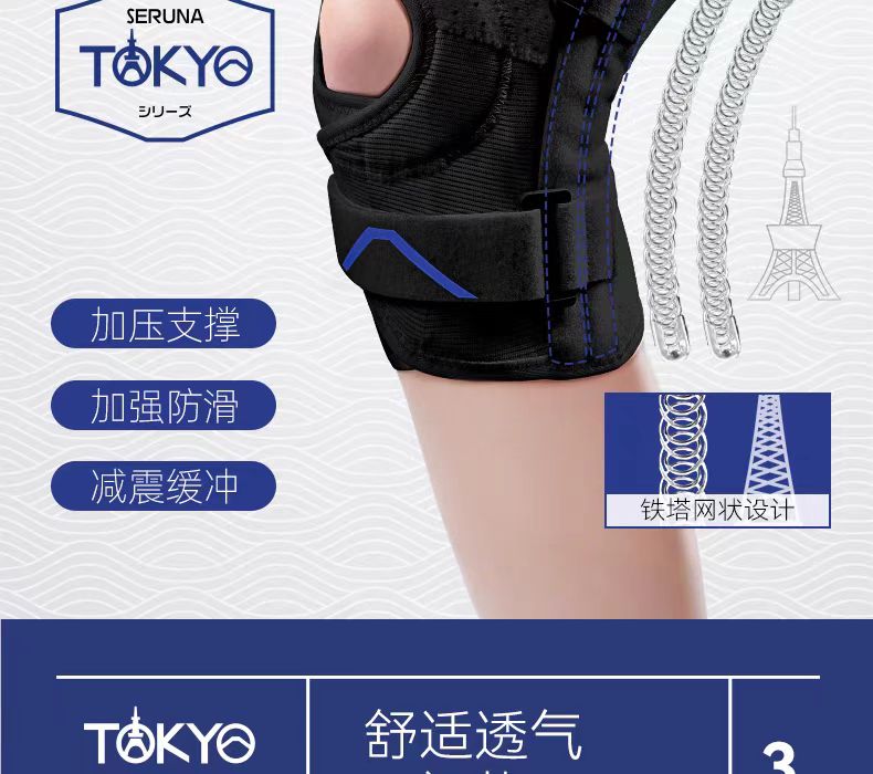 SERUNA四弹簧支撑轻量化徒步登山护膝护膝(单只自重120克!)