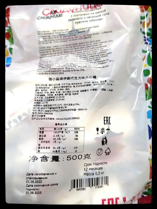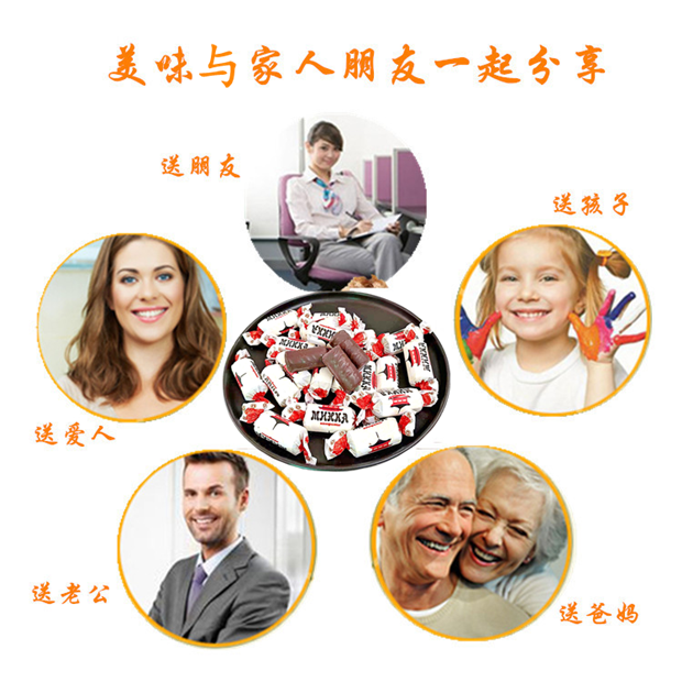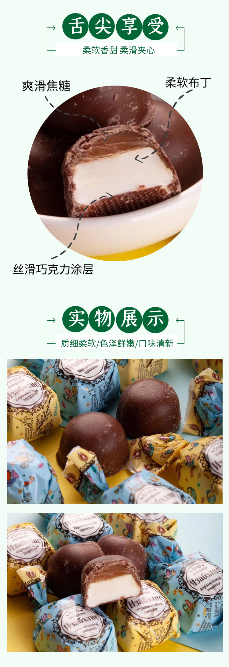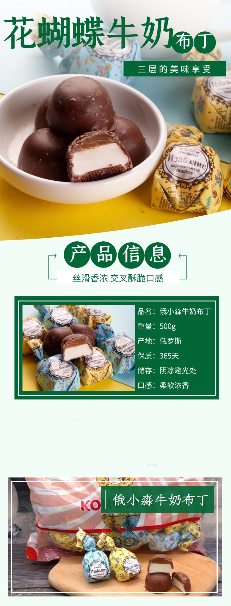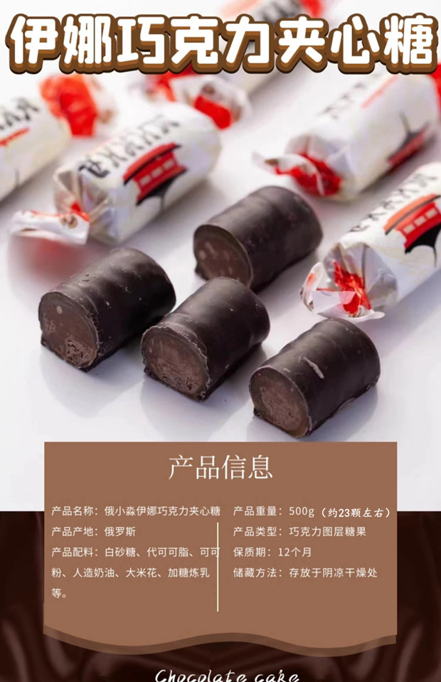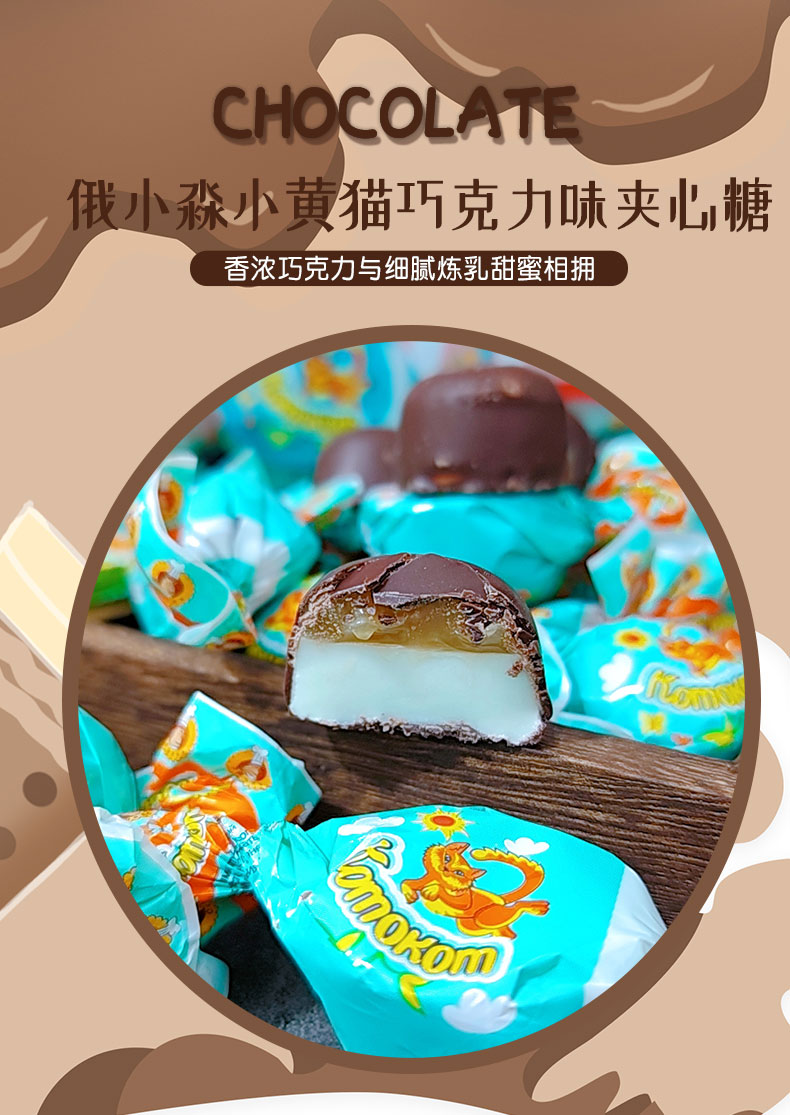 【中欧班列精选】WWJ俄罗斯巧克力糖 原装进口俄小淼牛奶布丁/伊娜巧克力/小黄猫巧克力夹心糖果 500g/袋