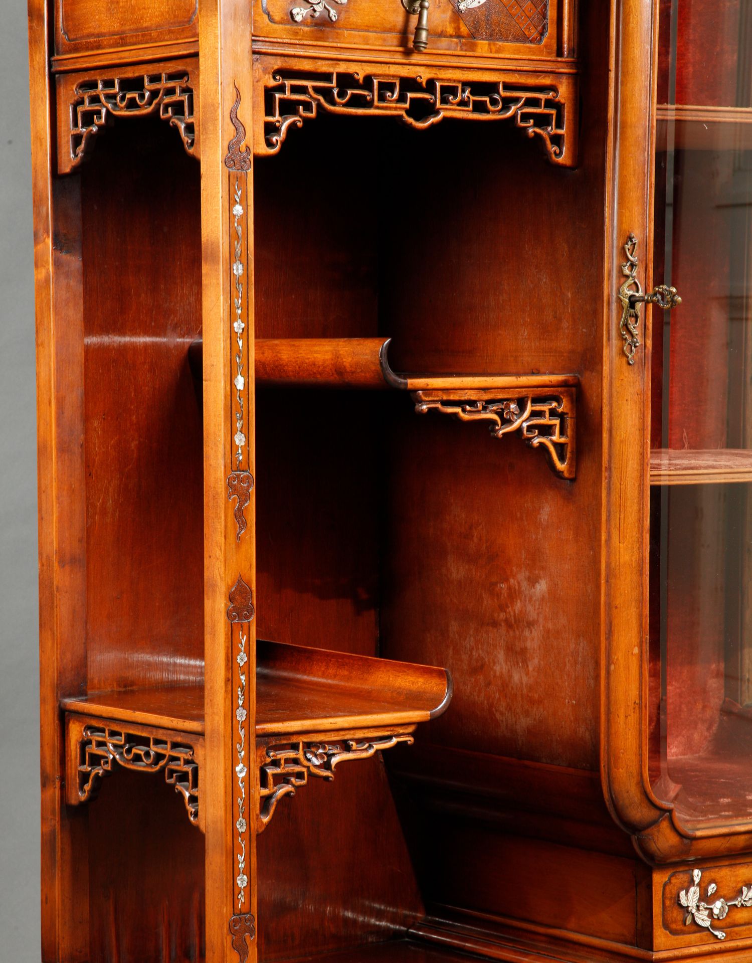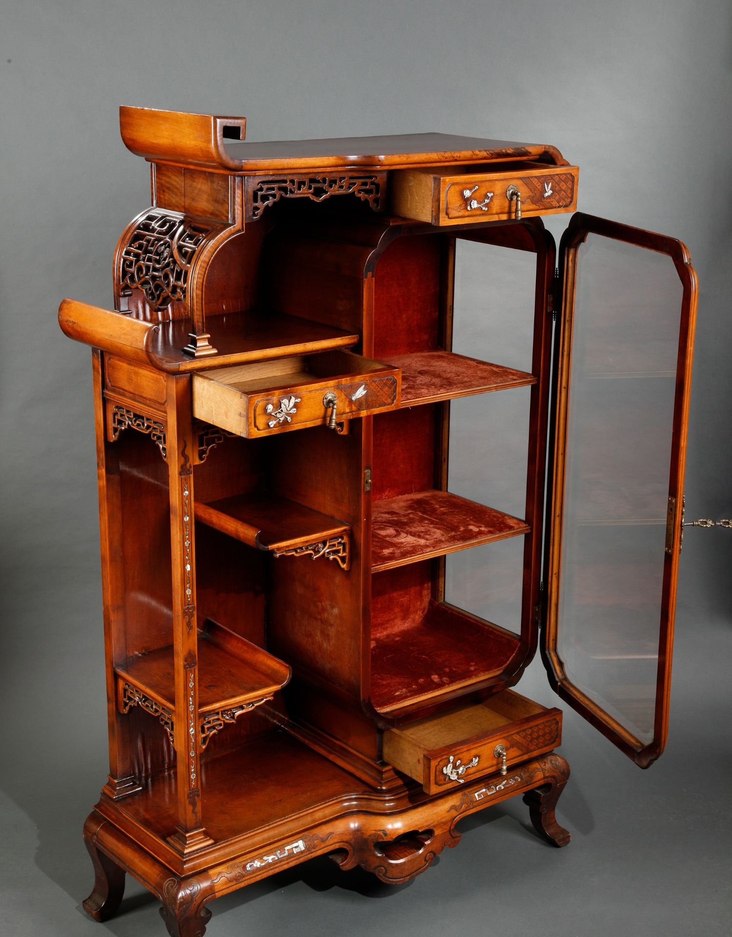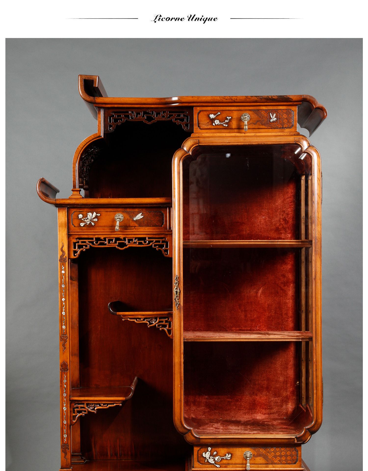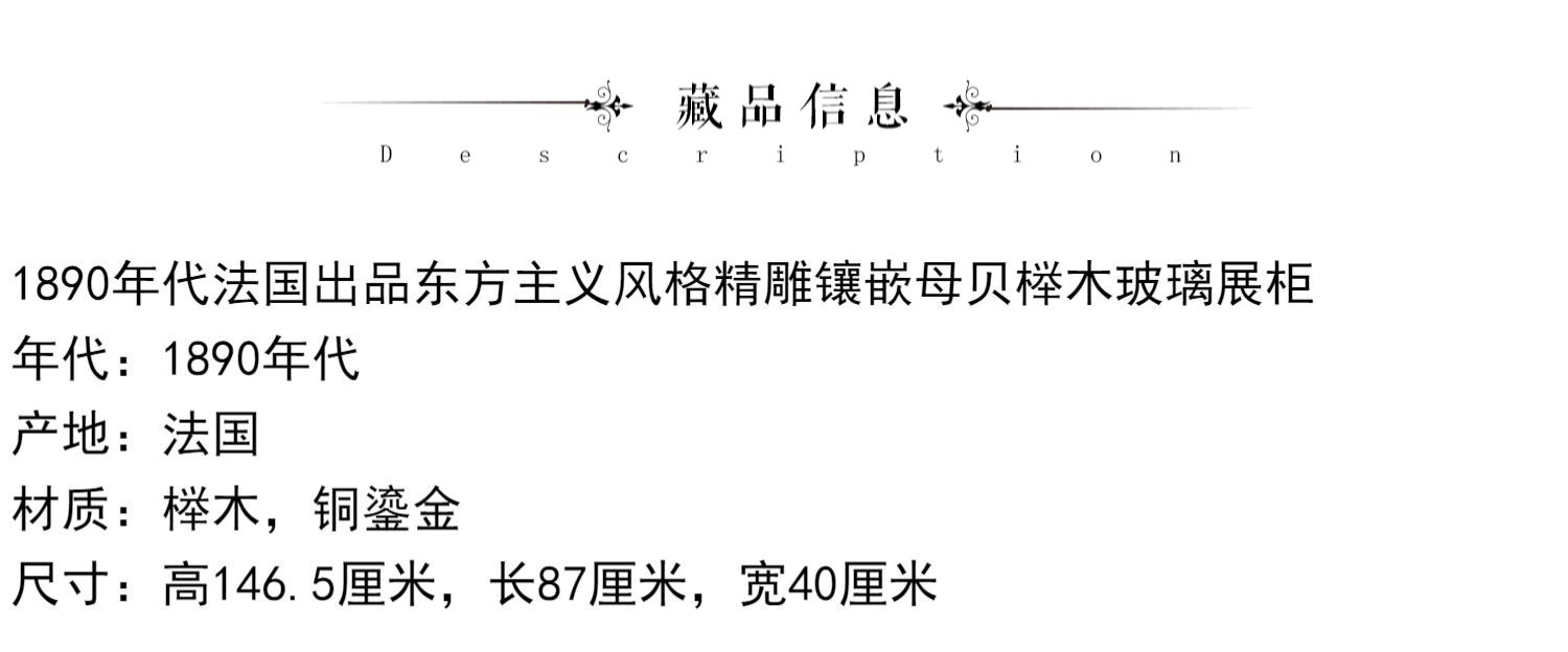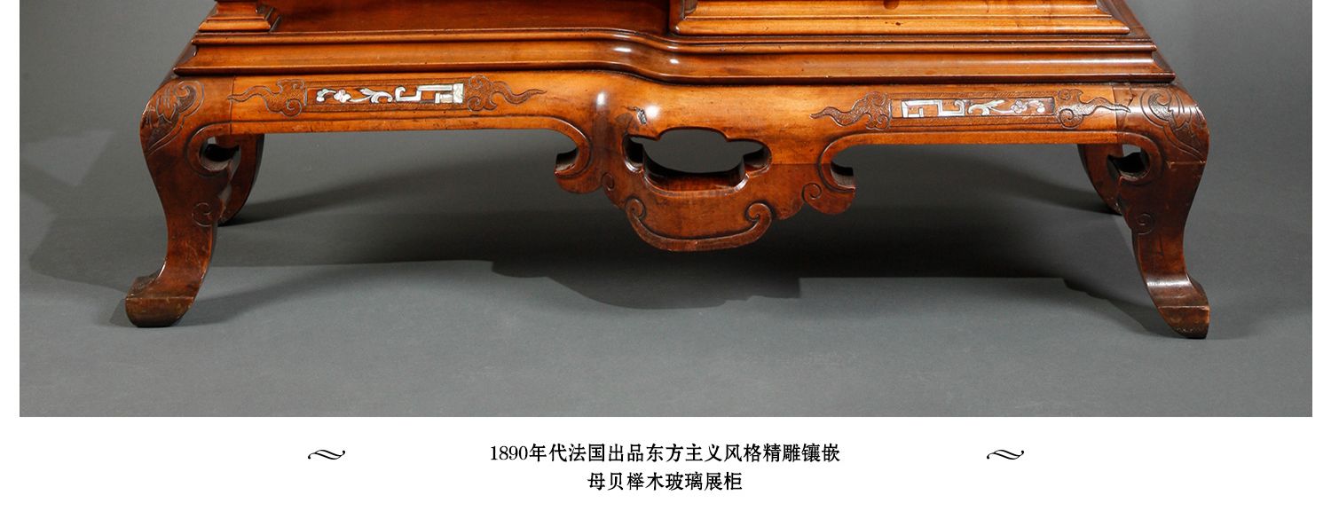 独角鹿西洋古董家具法国精雕镶嵌母贝东方主义风格榉木玻璃展柜