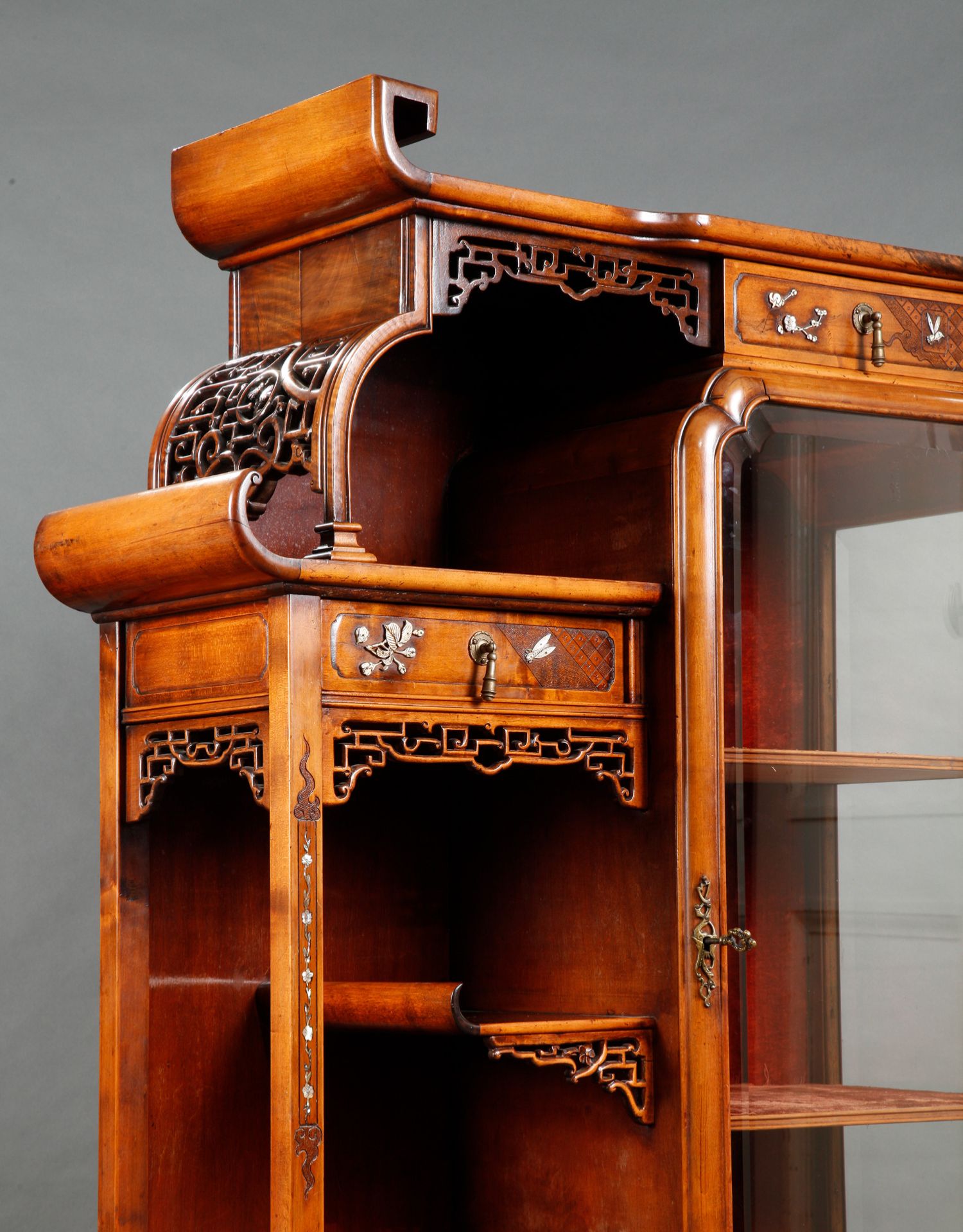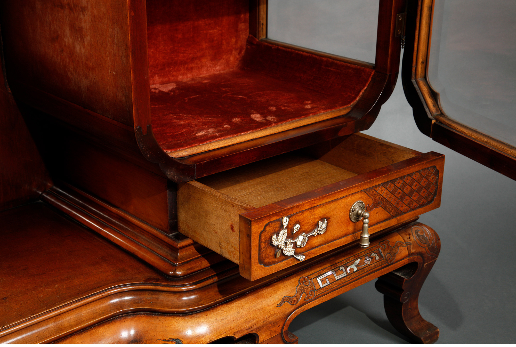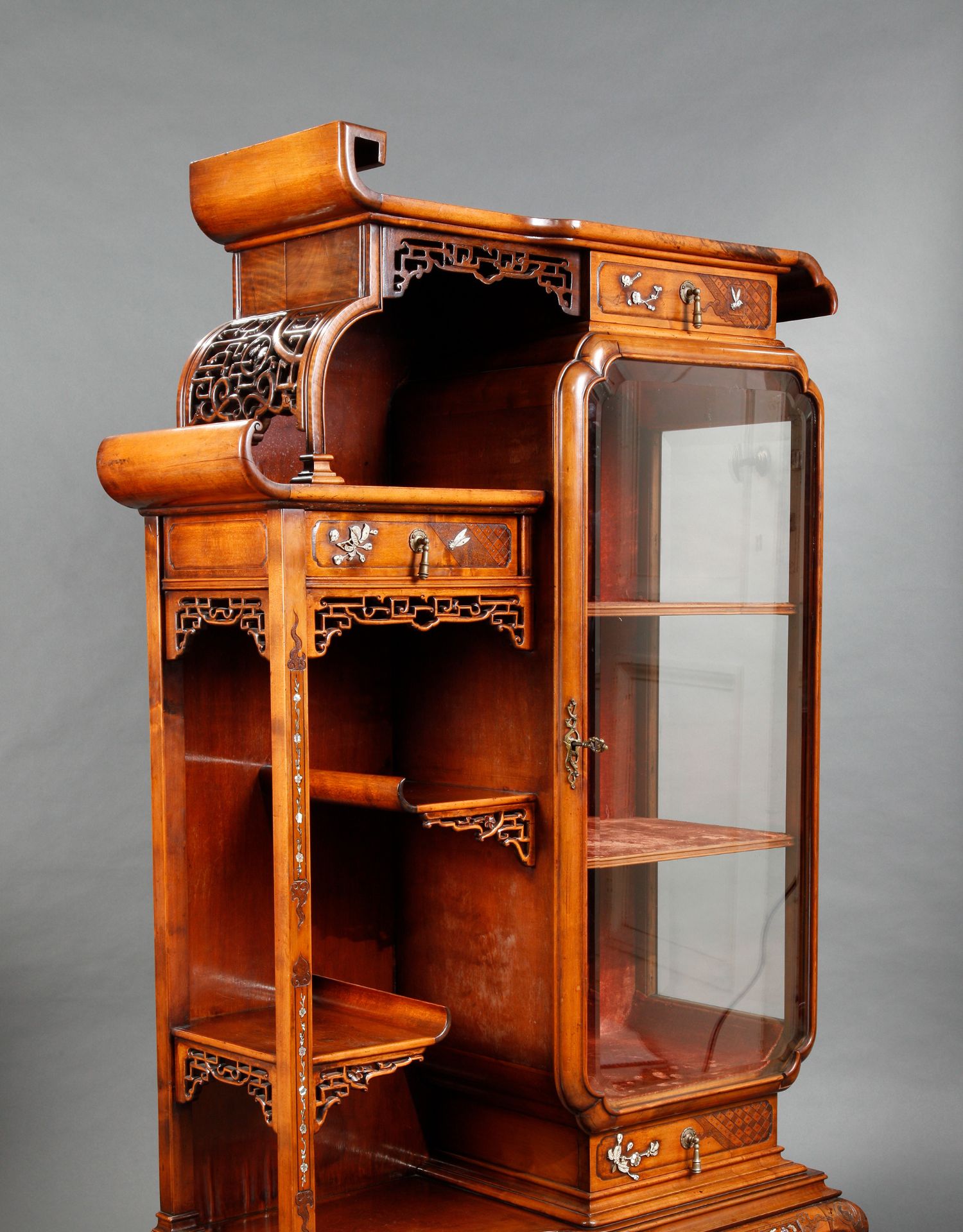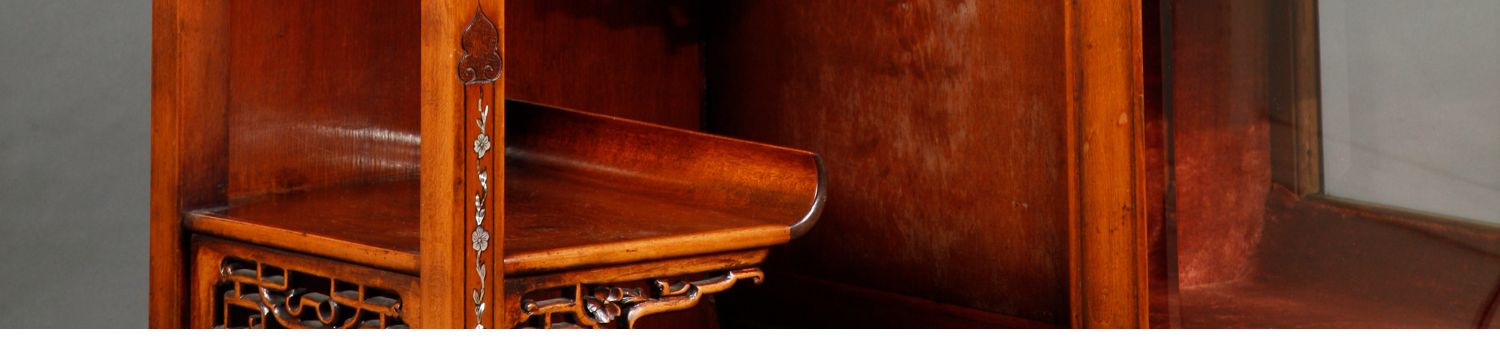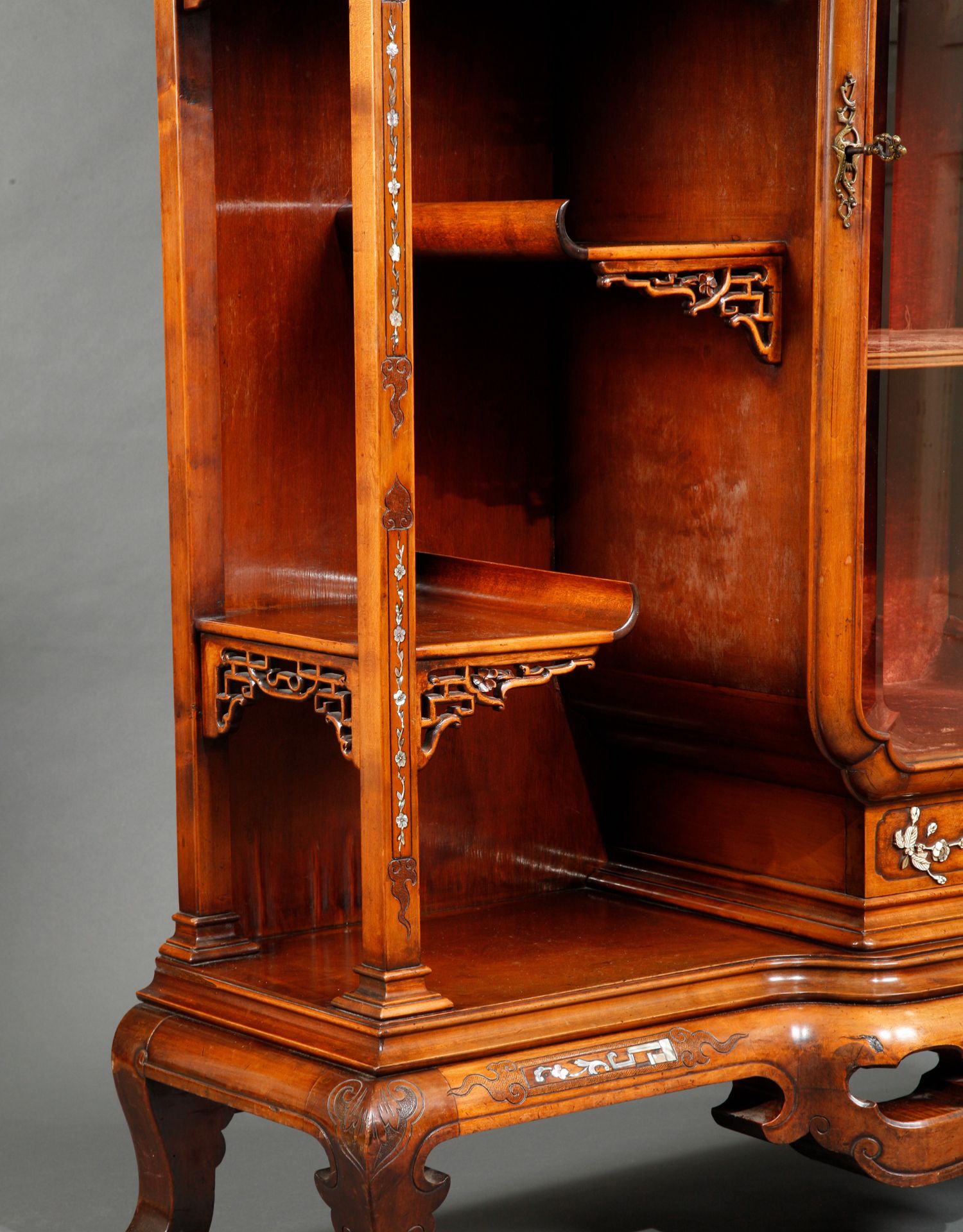 独角鹿西洋古董家具法国精雕镶嵌母贝东方主义风格榉木玻璃展柜