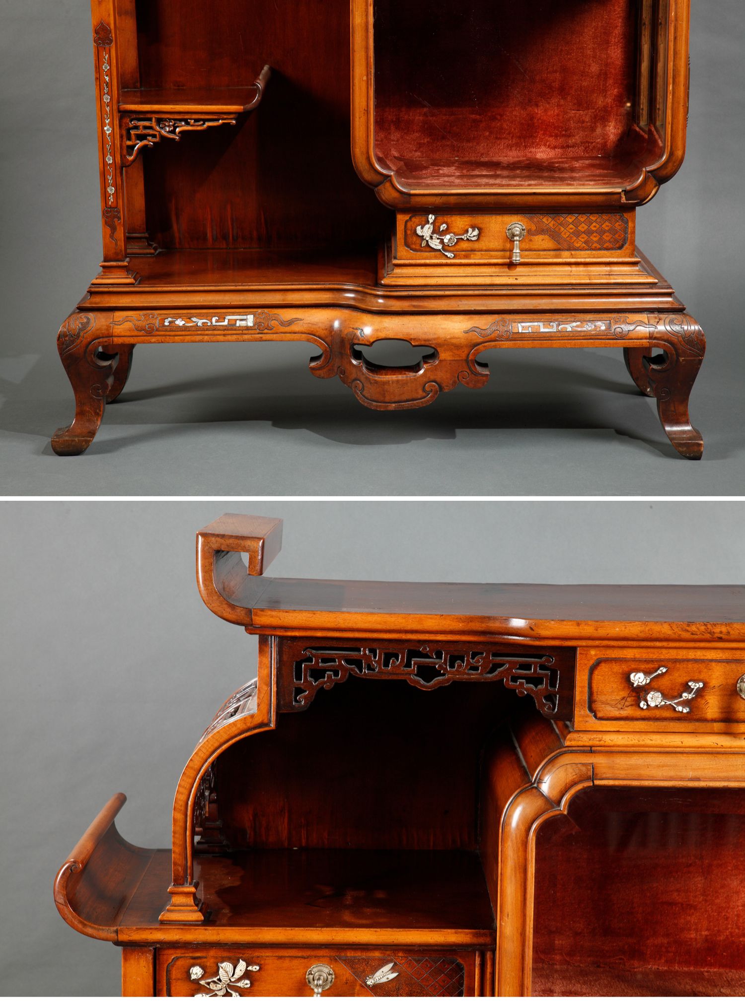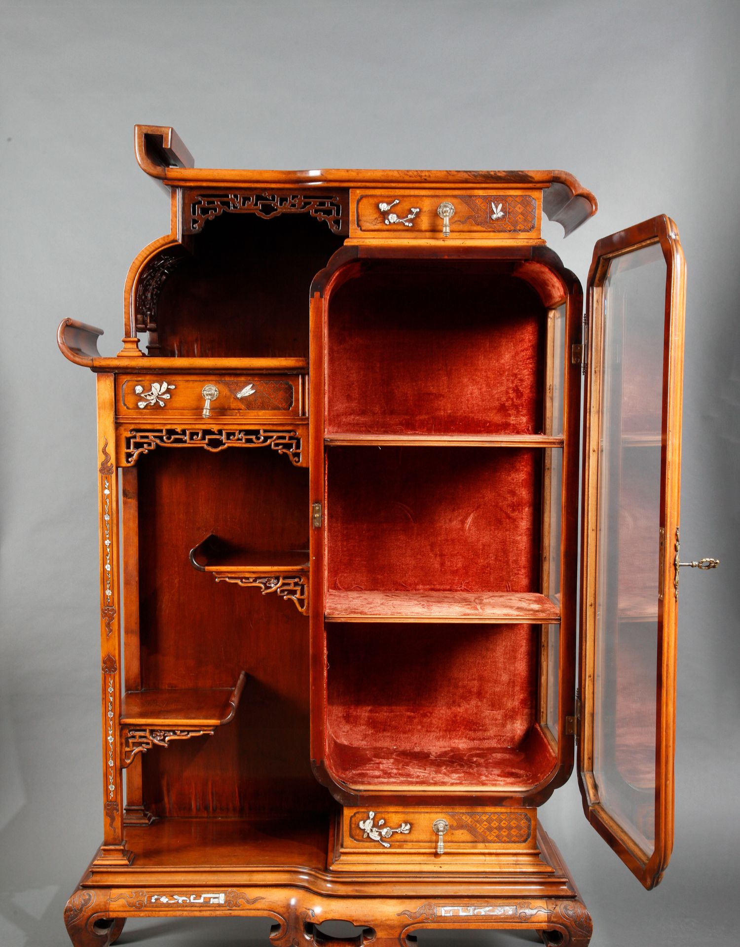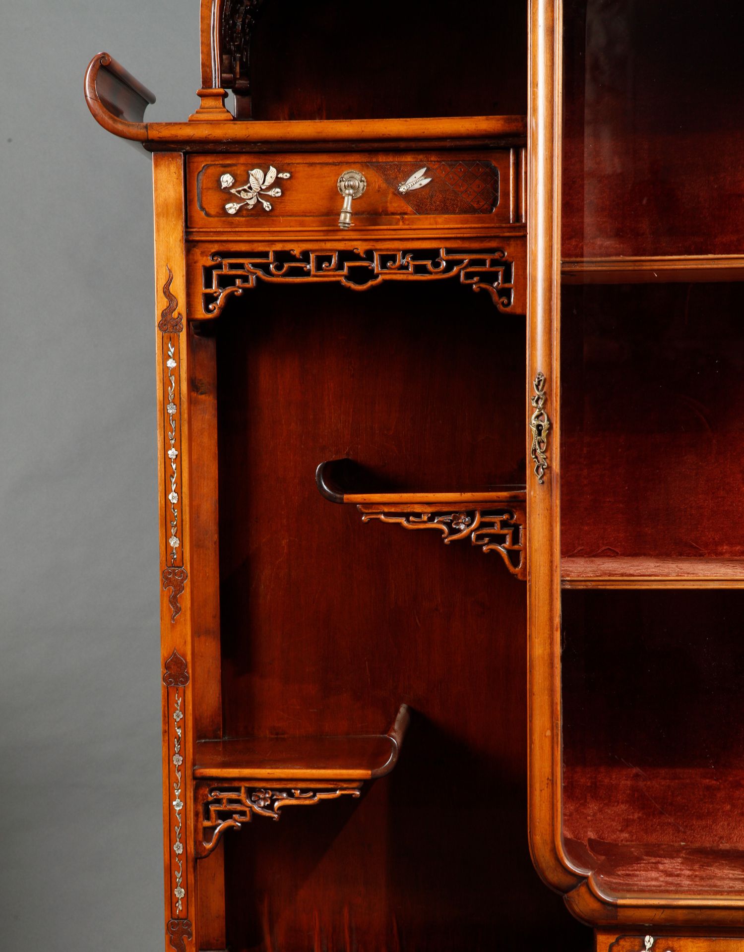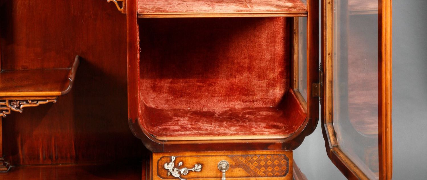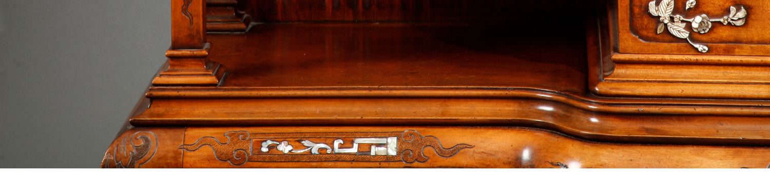 独角鹿西洋古董家具法国精雕镶嵌母贝东方主义风格榉木玻璃展柜