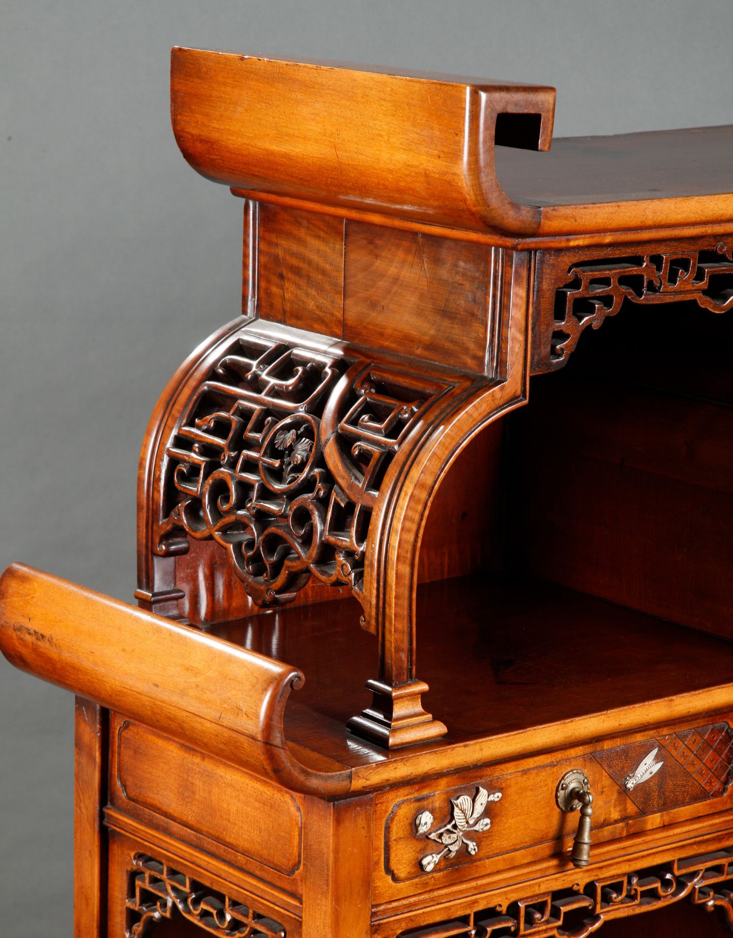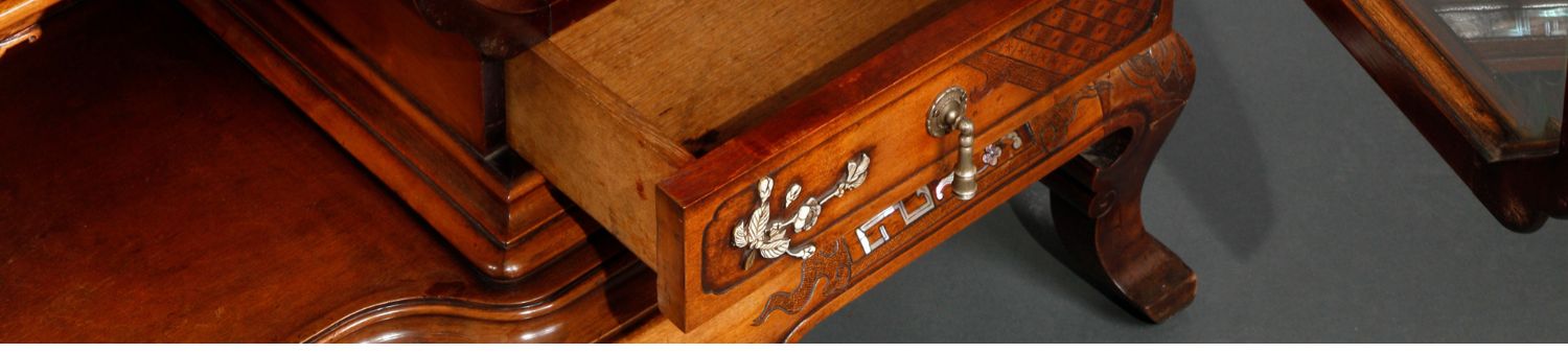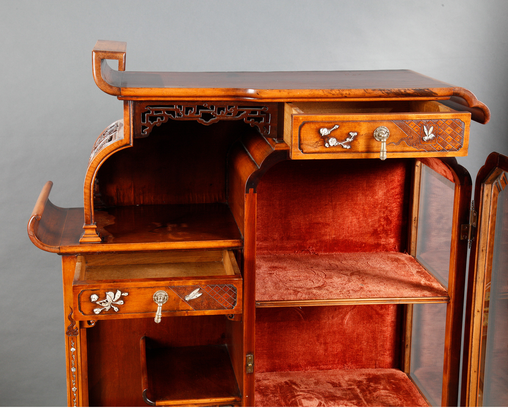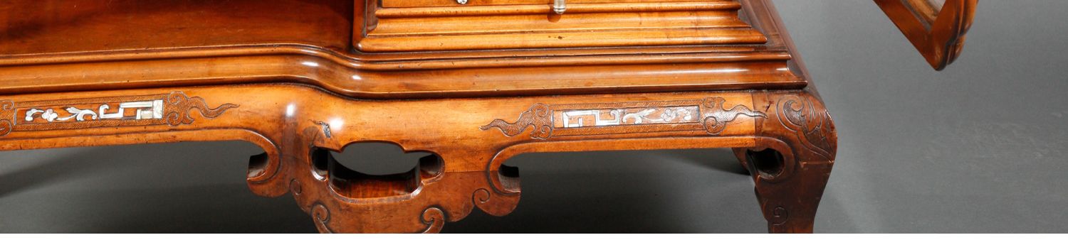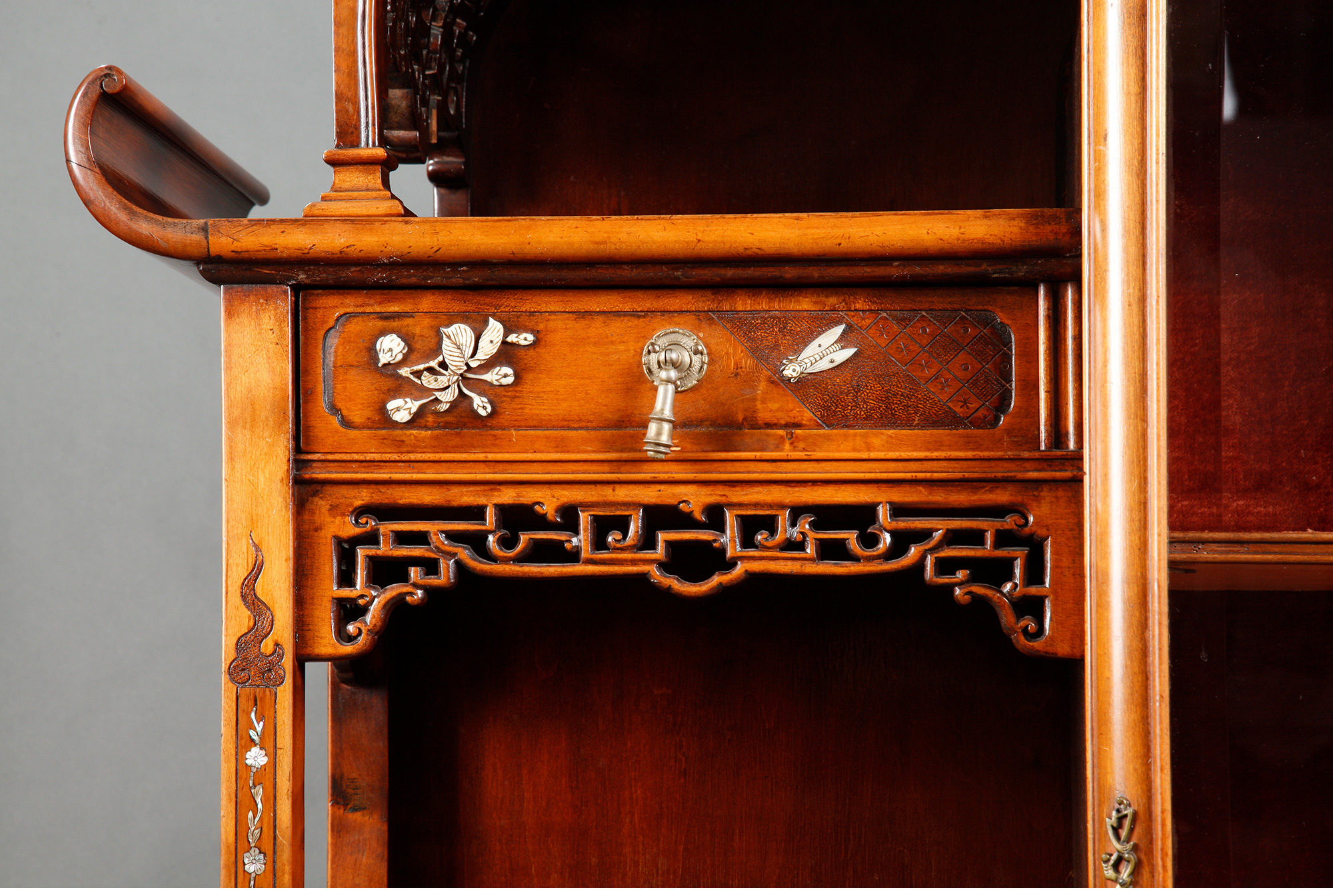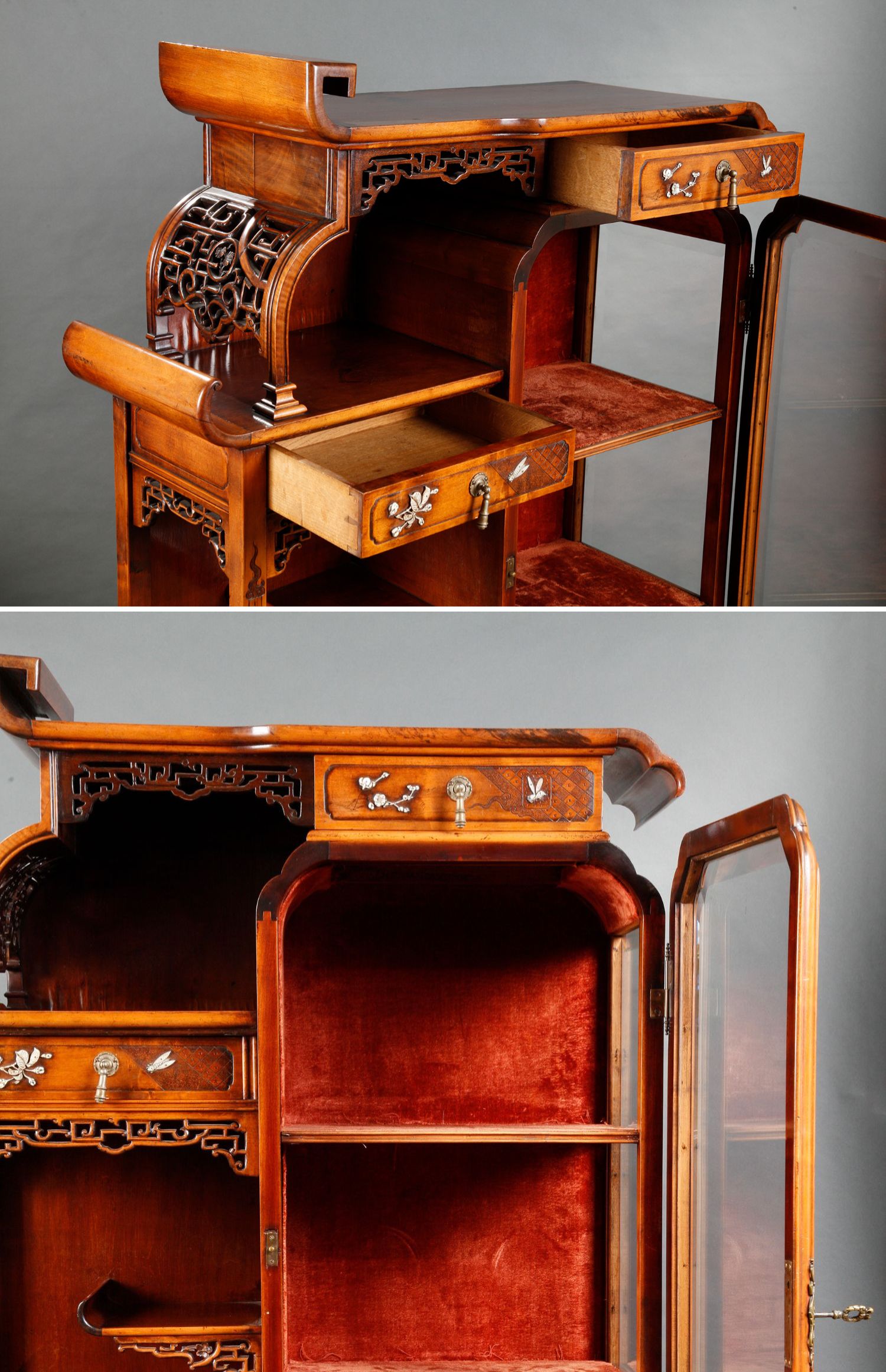 独角鹿西洋古董家具法国精雕镶嵌母贝东方主义风格榉木玻璃展柜