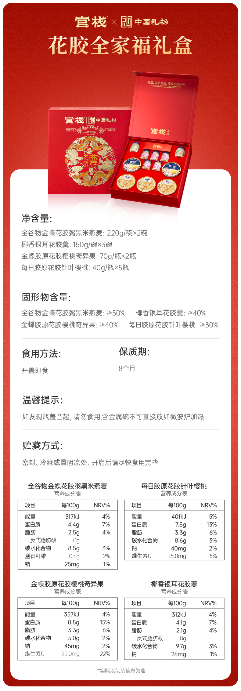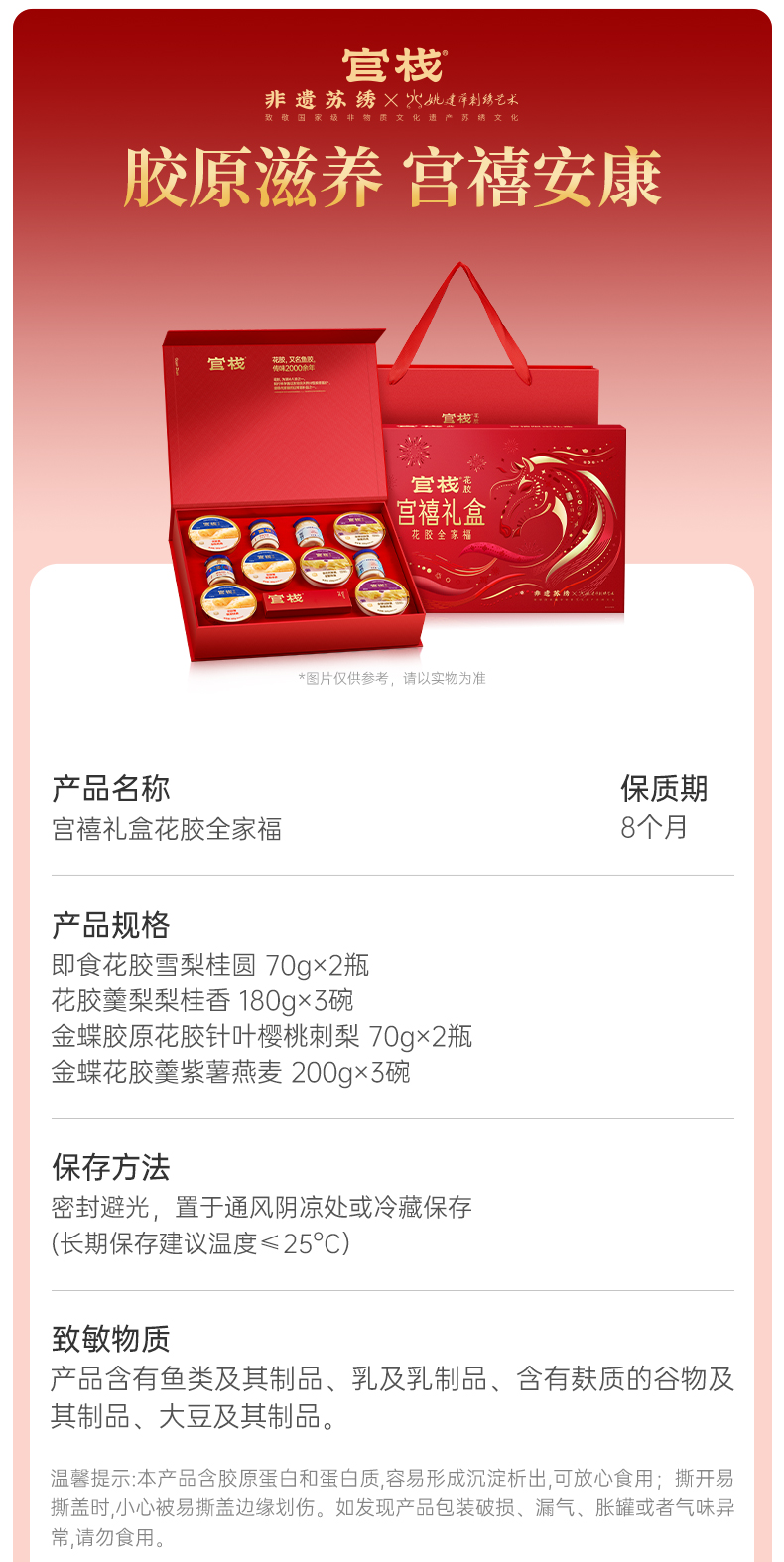 【汇总SKU】官栈 宫禧限定礼盒花胶全家福1420g 金蝶胶原花胶旗开得胜礼盒550g花胶全家福礼盒 即食花胶 海参 佛跳墙 花胶谷物粥 春节礼盒