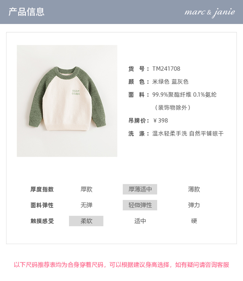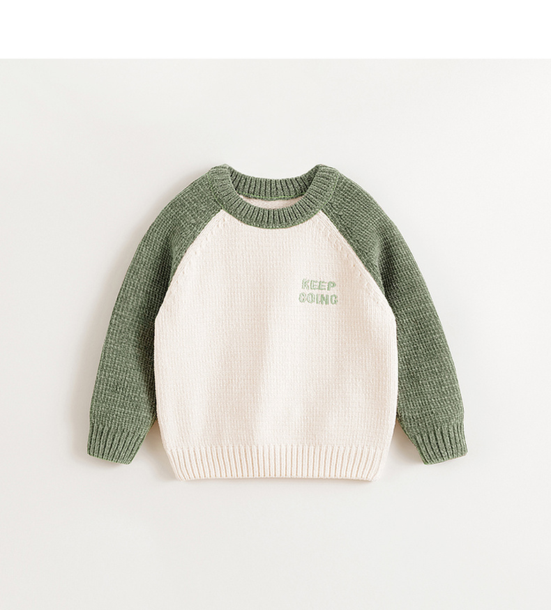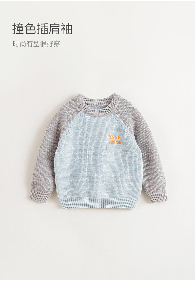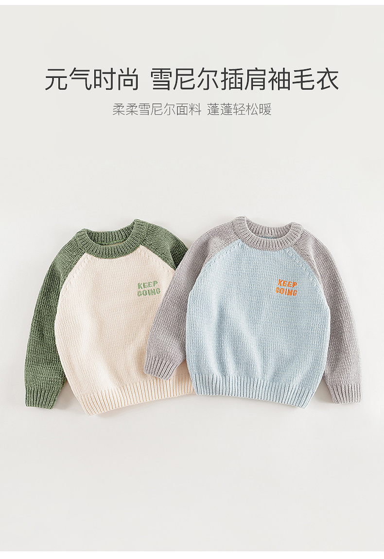 马克珍妮男童时尚插肩袖雪尼尔毛衣儿童针织衫2024秋冬新款241708