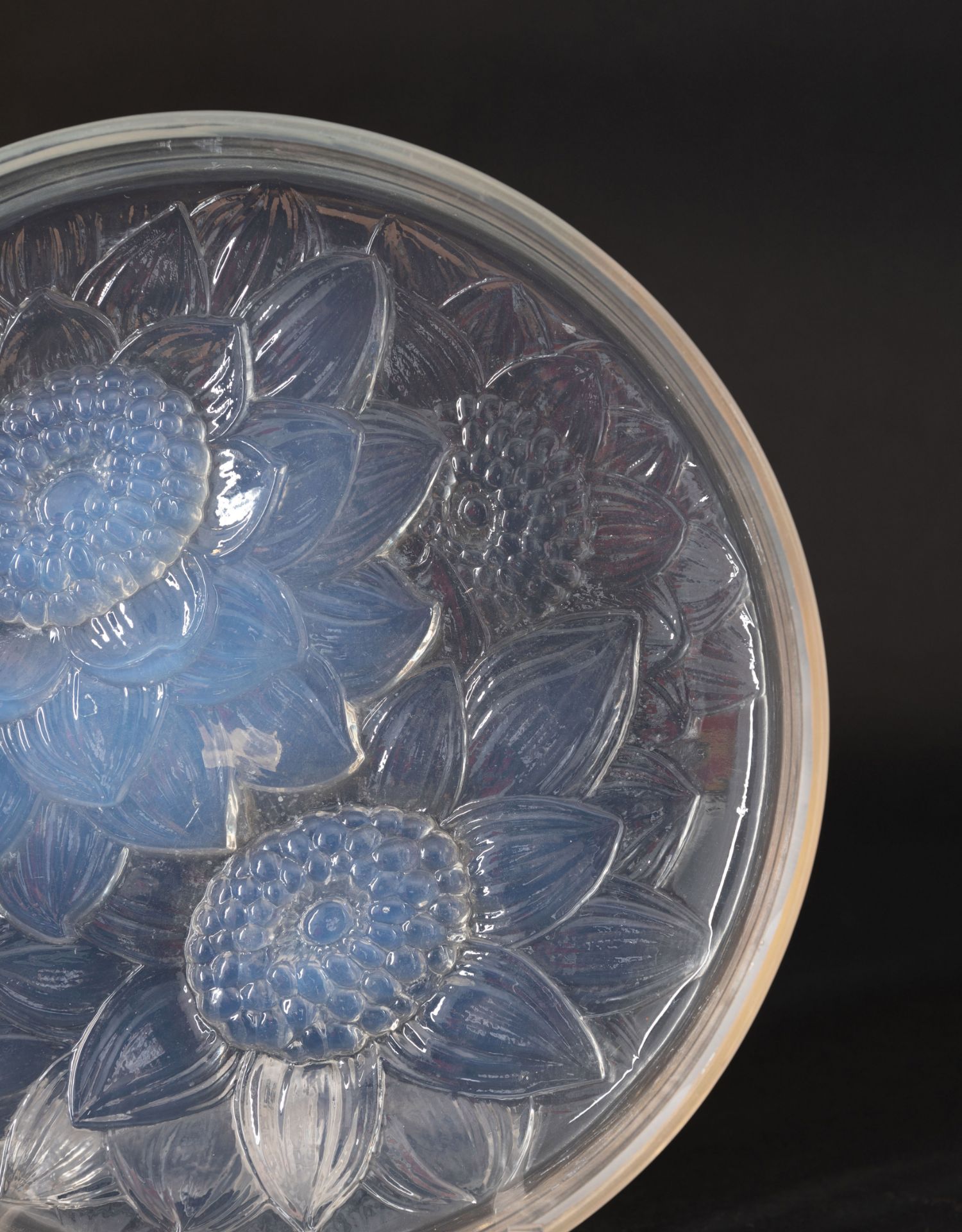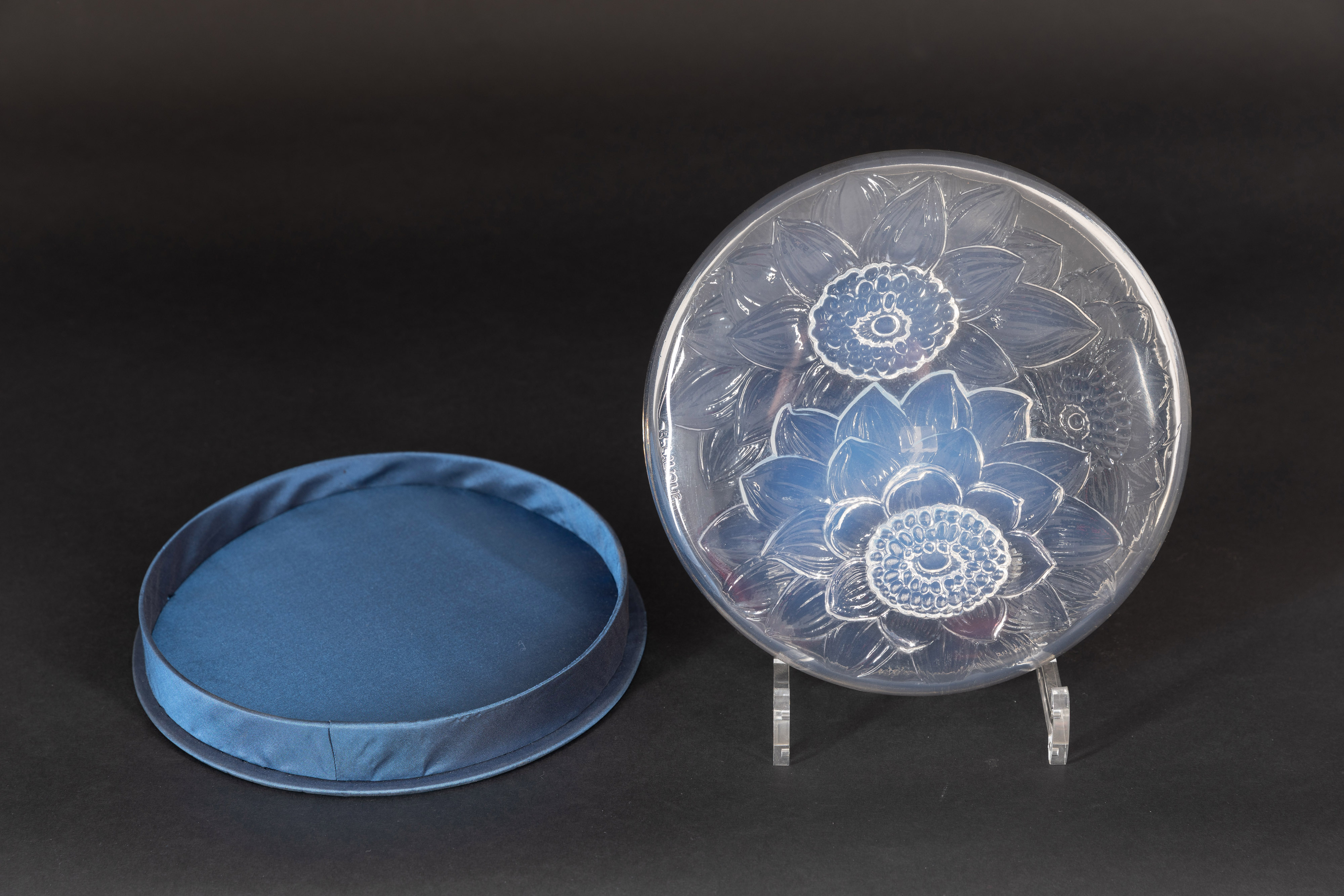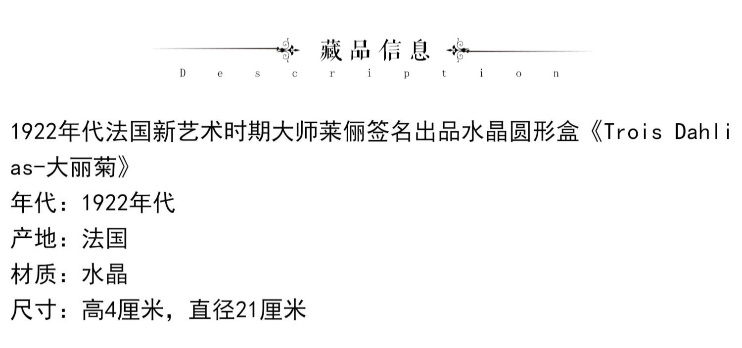 独角鹿西洋古董家居摆件莱俪水晶圆形盒《Trois Dahlias-大丽菊》