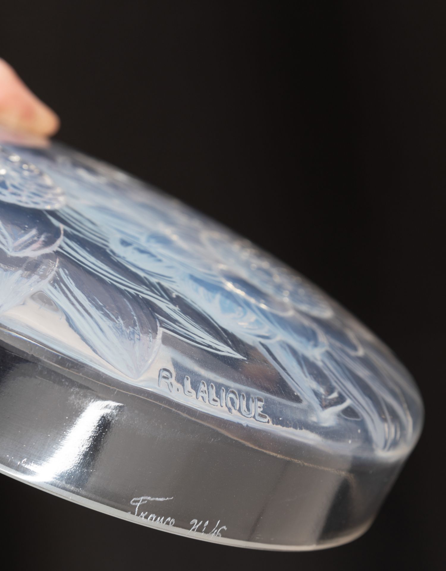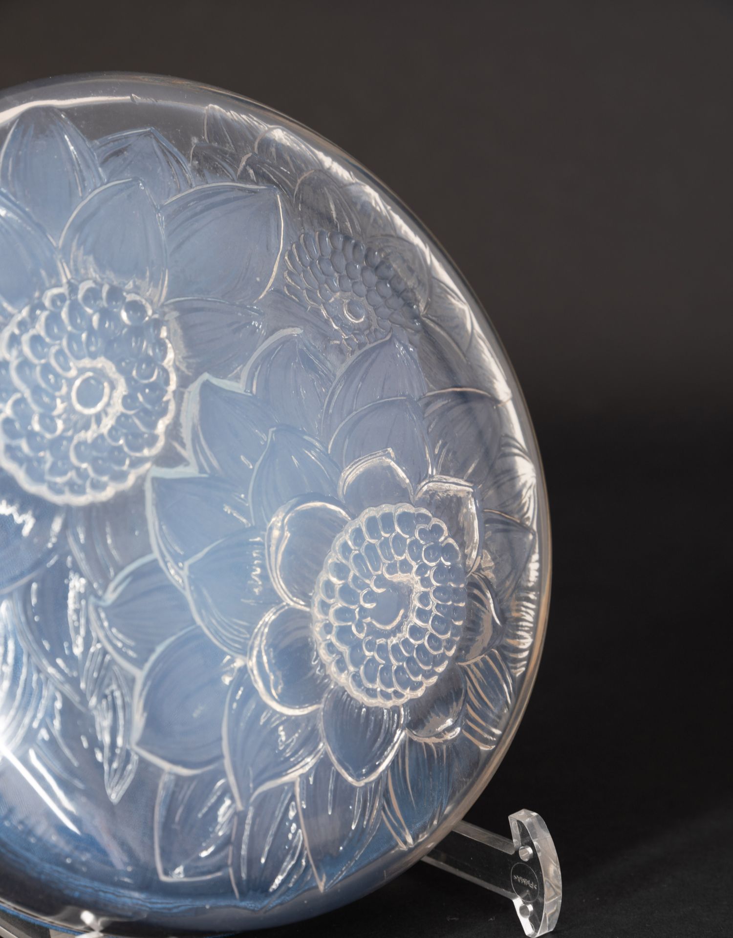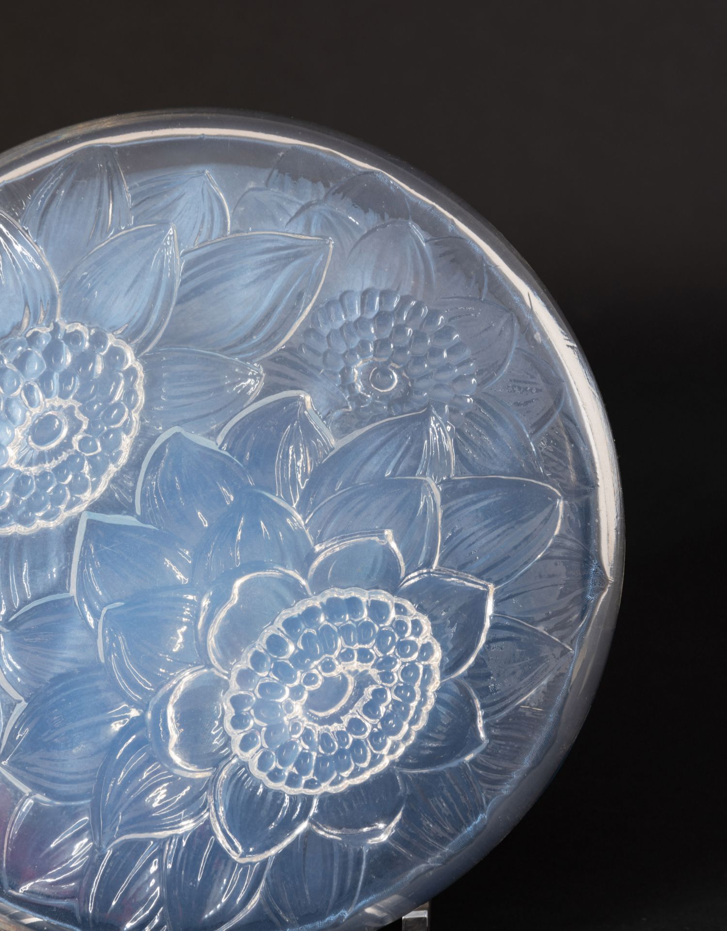 独角鹿西洋古董家居摆件莱俪水晶圆形盒《Trois Dahlias-大丽菊》