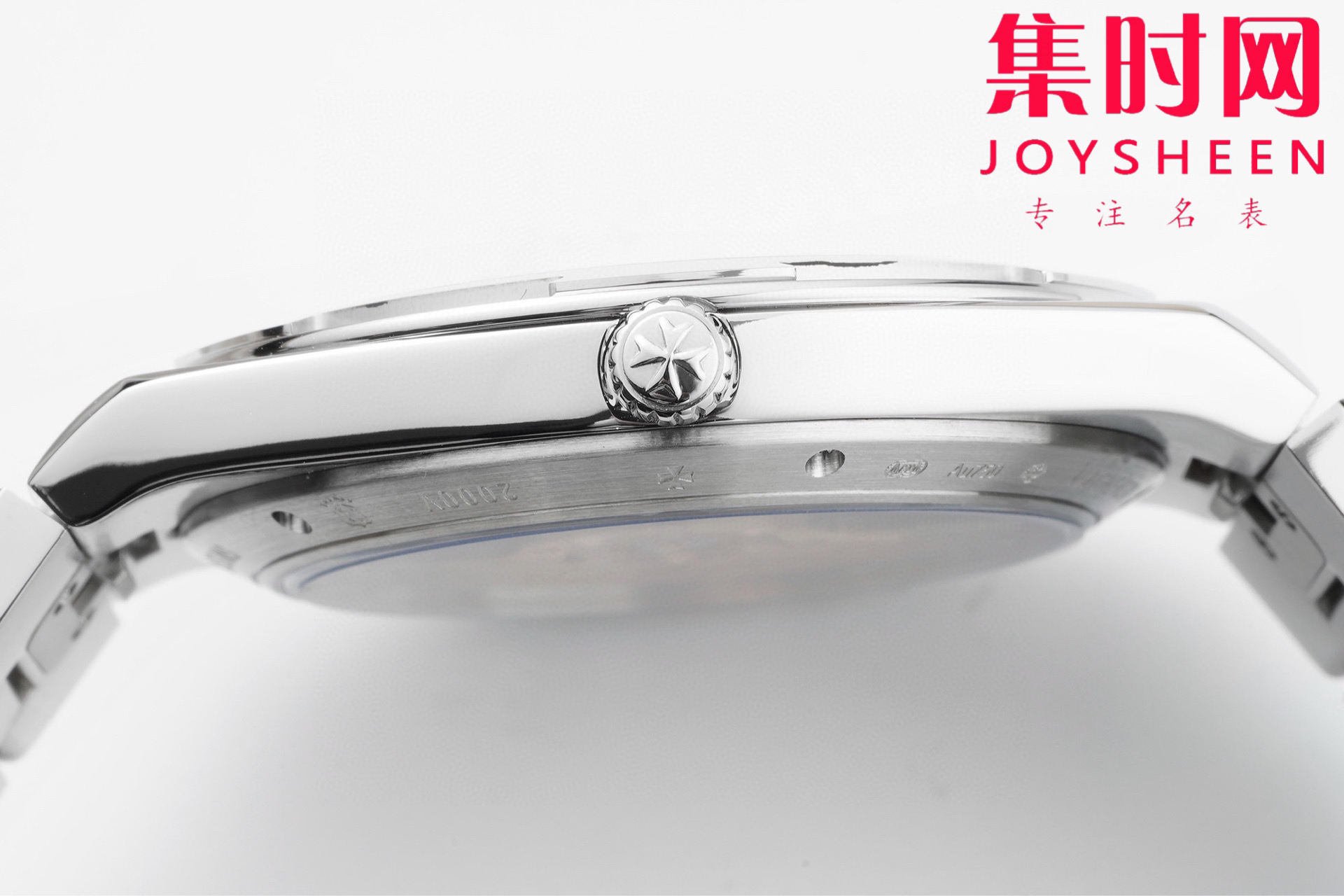 VC江诗丹顿OVERSEAS 8F纵横四海超薄系列2000V手表 男士腕表 采用直径40mm的表壳,搭载自动上链机械机芯——9015改1120 QP/1超薄全自动机械机芯 精钢材质曲线外观流畅自然,工艺精度与美学质感兼具。圆弧形的带有抛光及缎面修饰表圈及表壳,更具观赏性 简约典雅的旭日纹拉丝表盘,干净利落。更有一丝大道至简的感觉 值得一说的是这款钢带在尾粒设计了可拉伸的调节 更好的服务了广大表友因为手腕粗加钢粒的需求
