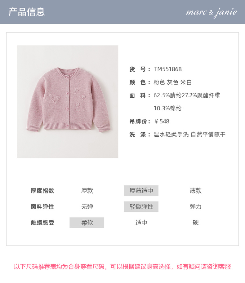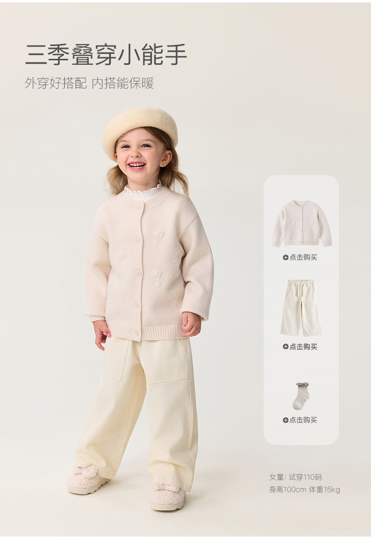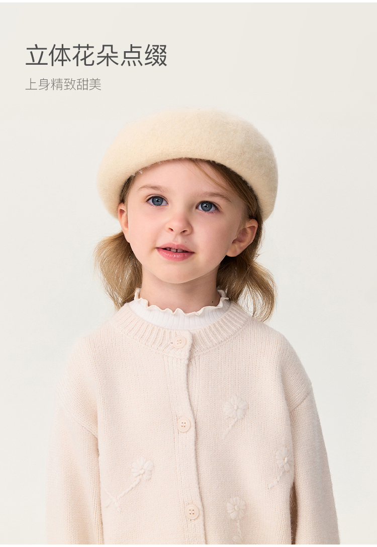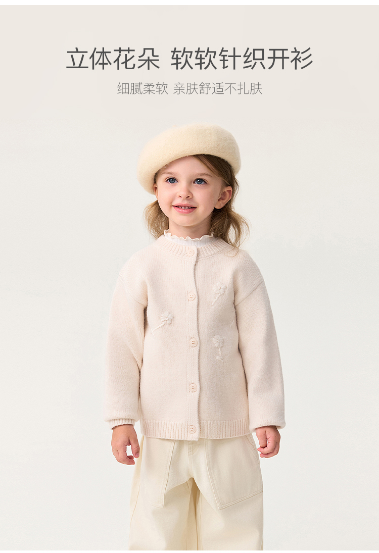马克珍妮女童立体花朵轻软针织开衫2025年秋冬新款551868