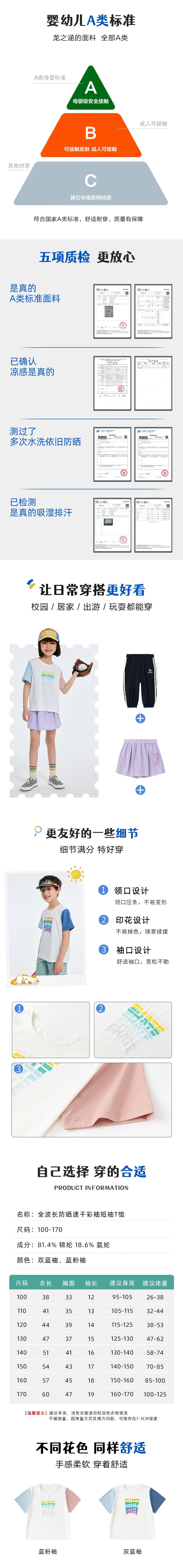【CC爸妈新品】龙之涵 全波长防晒速干短袖T恤 百棉双色T恤 条纹衬衣合集