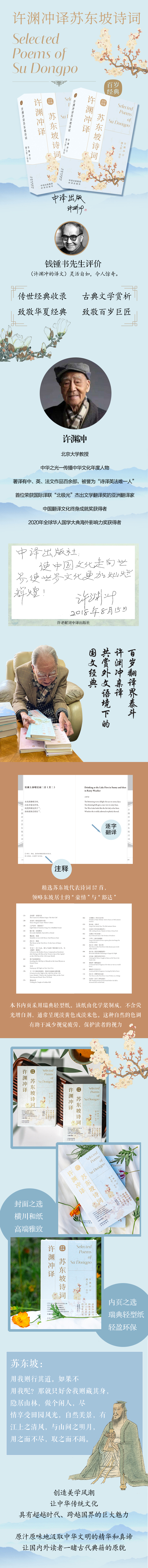 许渊冲译苏东坡诗词:传世经典,双语魅力 百岁翻译界泰斗许渊冲亲译,共赏外文语境下的国文经典 精选苏东坡代表诗词57首,领略东坡居士的“豪情”与“豁达”