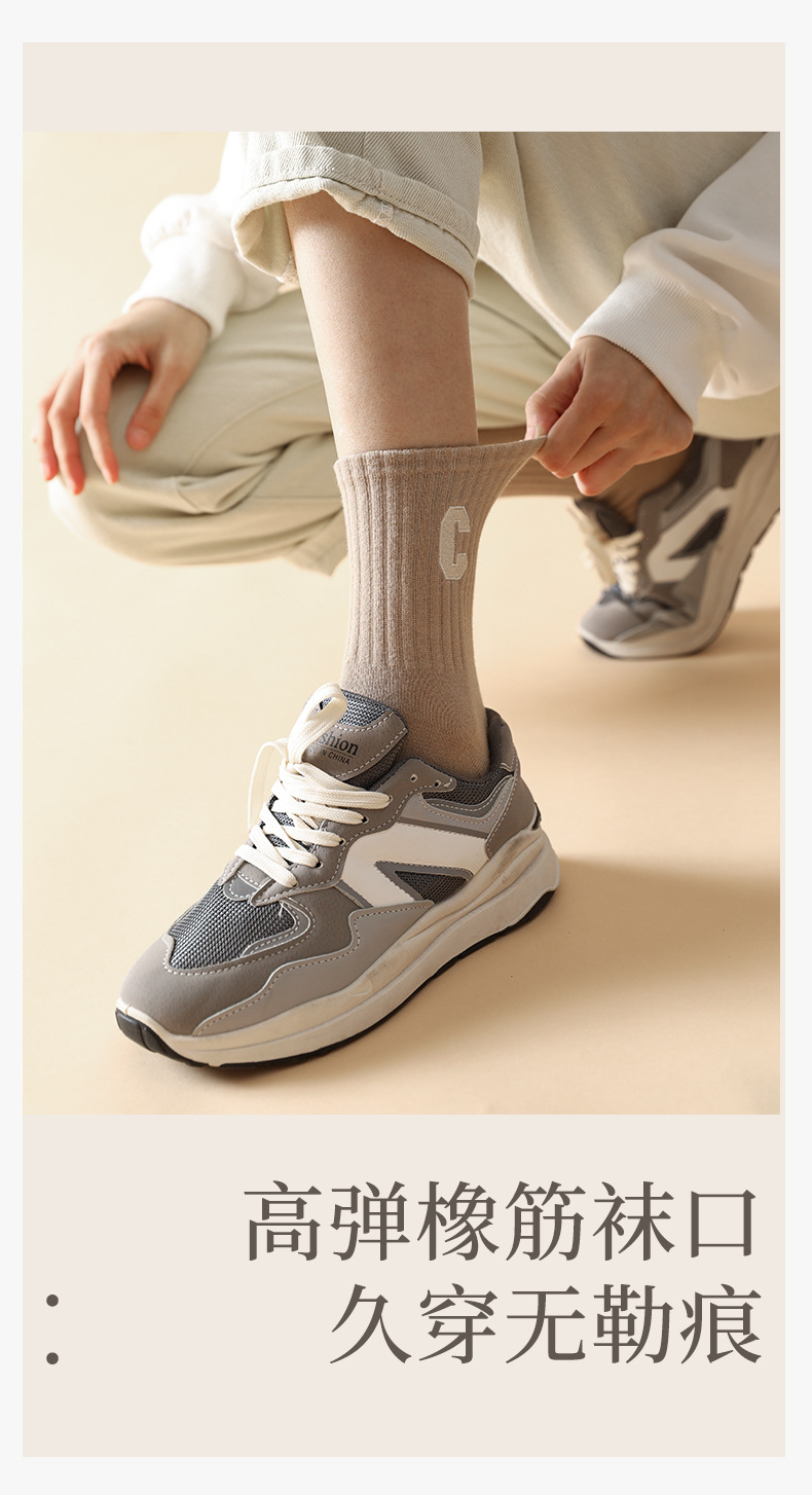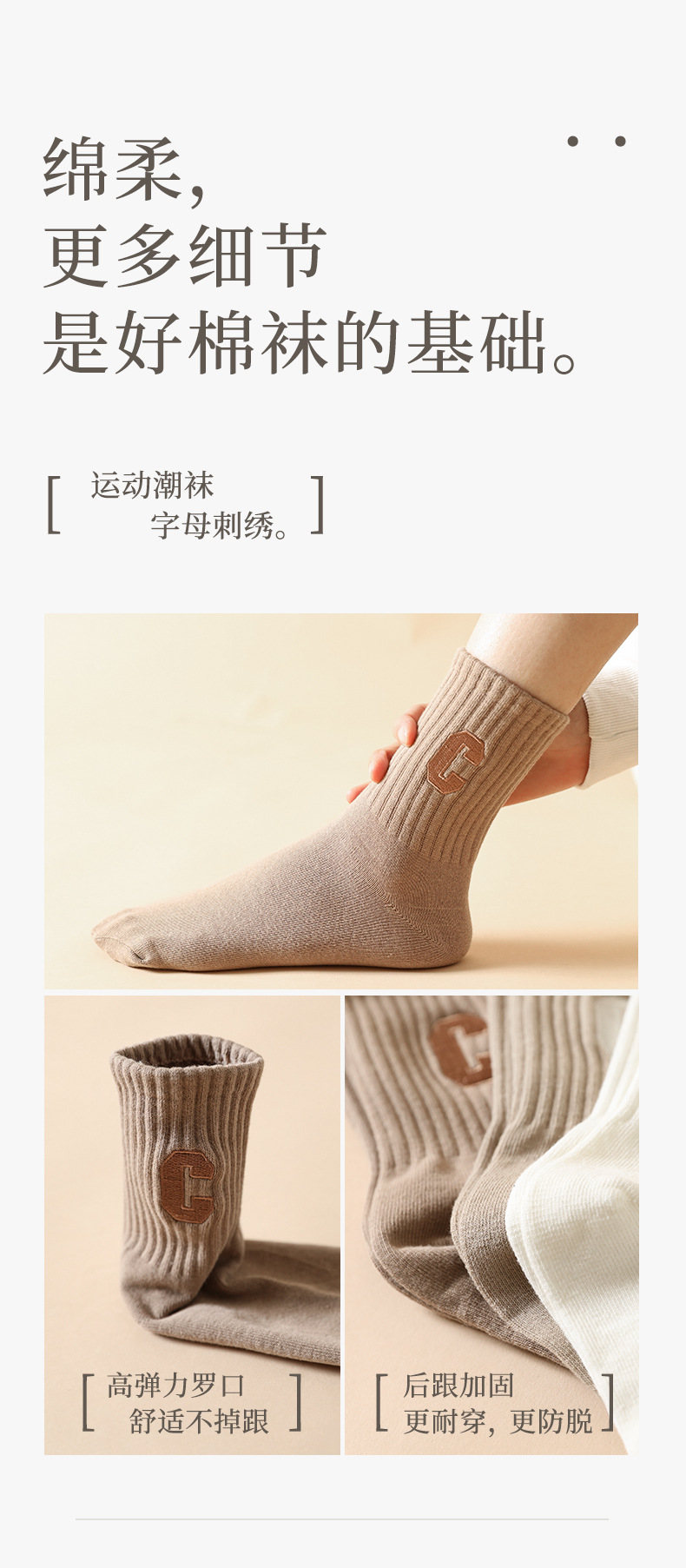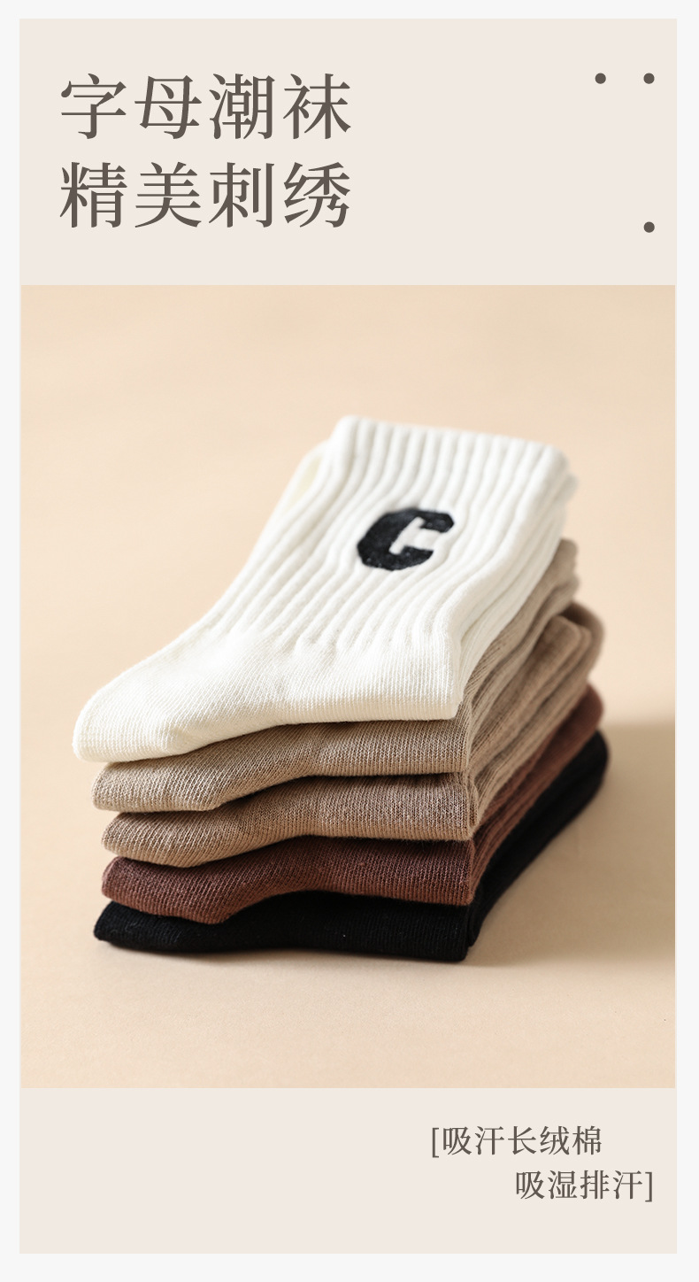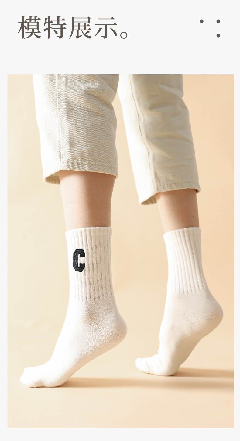 「5双装!数款组合」春秋季配鲨鱼裤字母刺绣中筒袜 纯色棉袜网红款长袜外穿运动高筒袜配饰