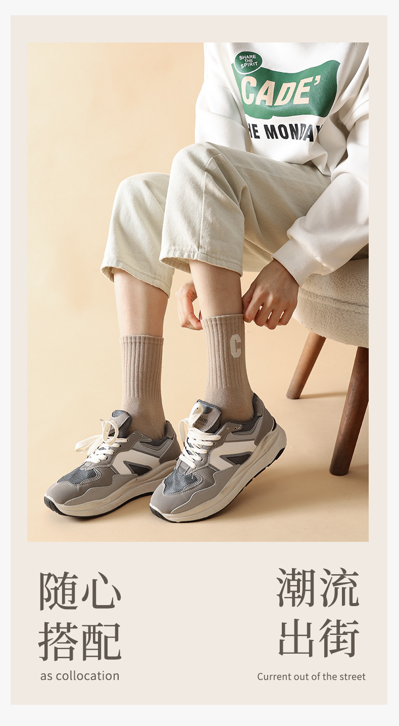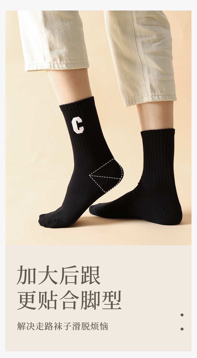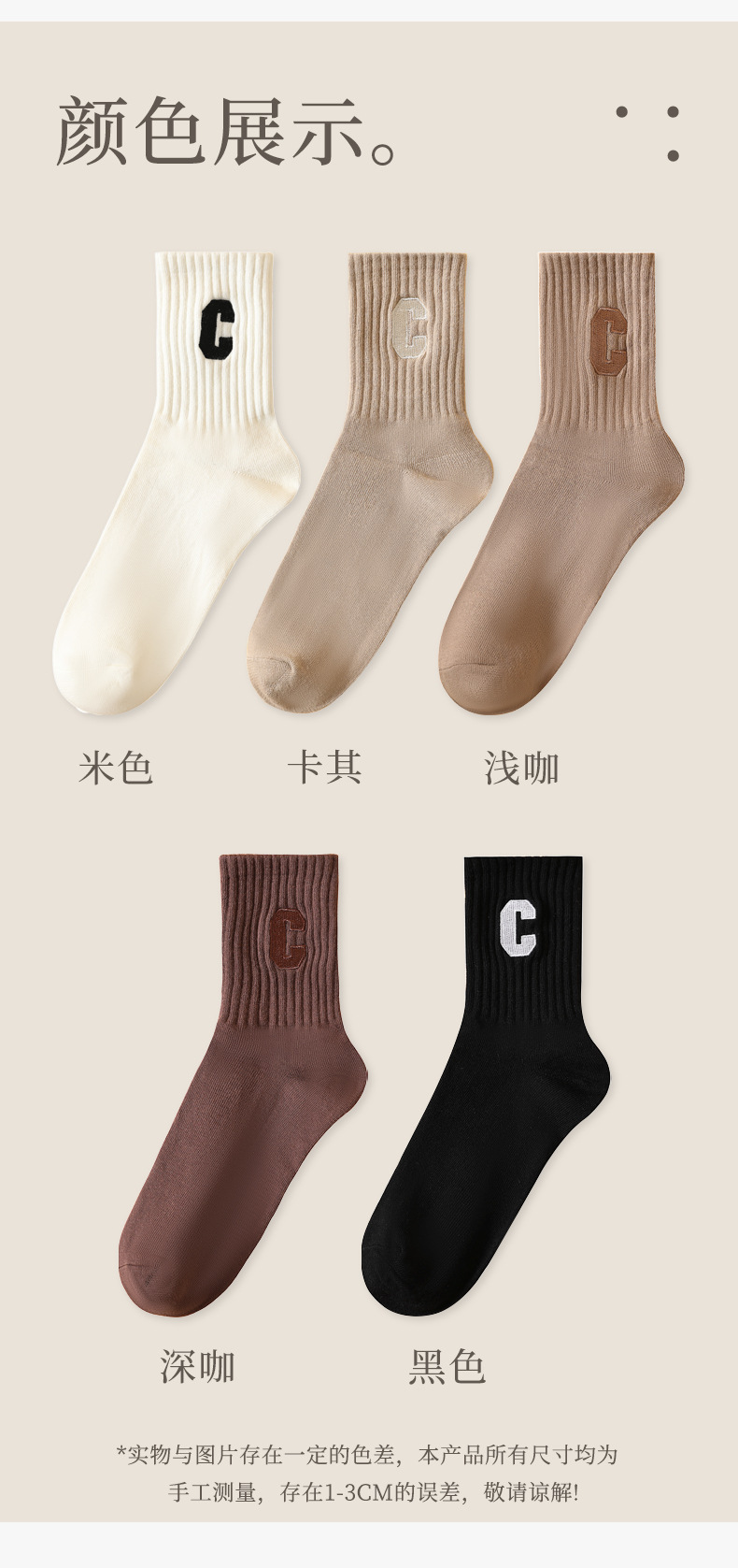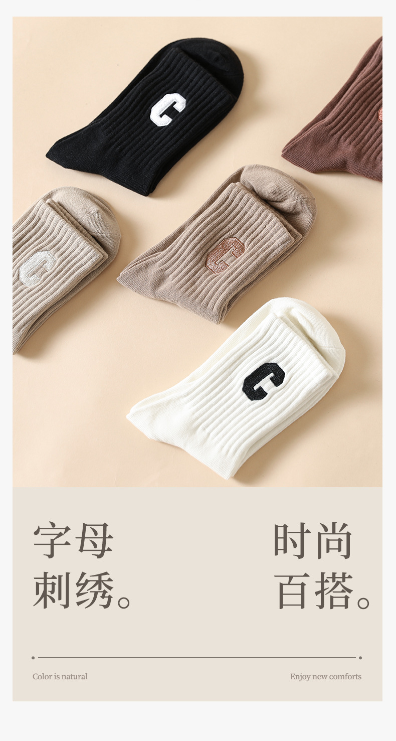 「5双装!数款组合」春秋季配鲨鱼裤字母刺绣中筒袜 纯色棉袜网红款长袜外穿运动高筒袜配饰