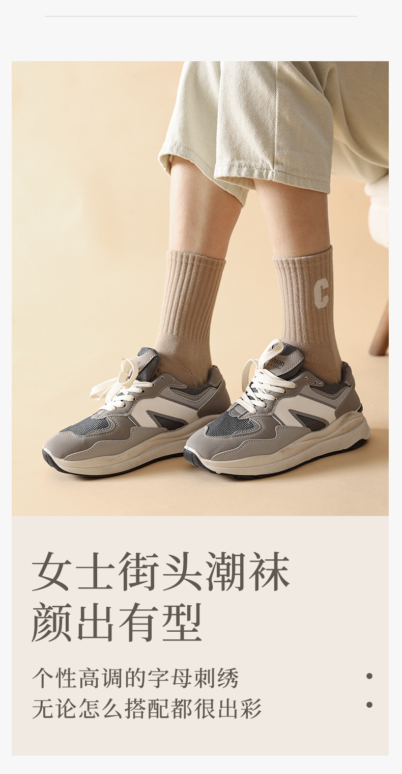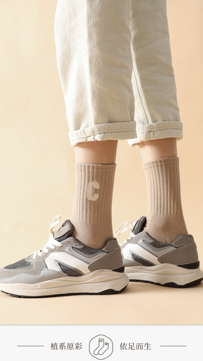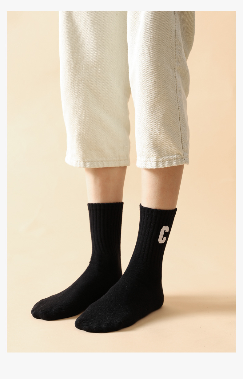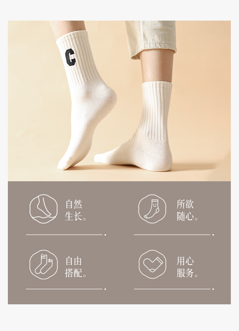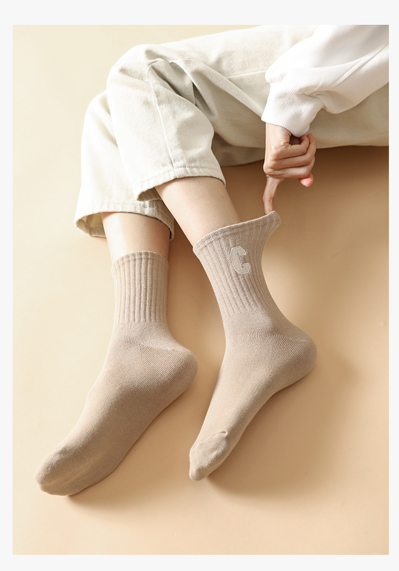 「5双装!数款组合」春秋季配鲨鱼裤字母刺绣中筒袜 纯色棉袜网红款长袜外穿运动高筒袜配饰