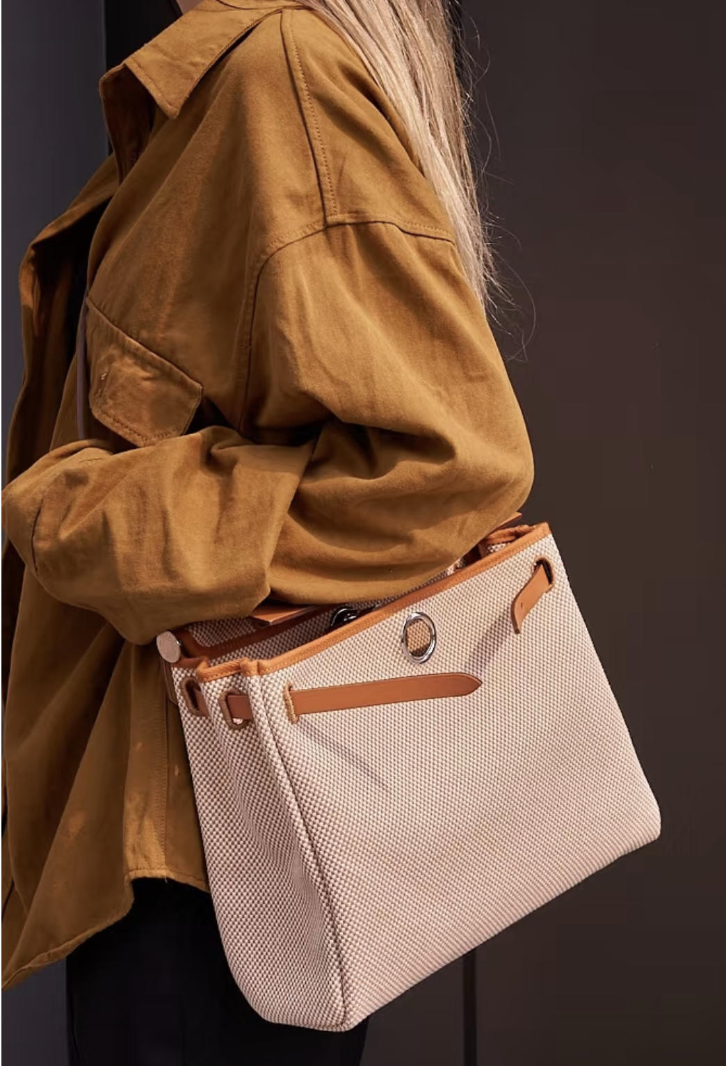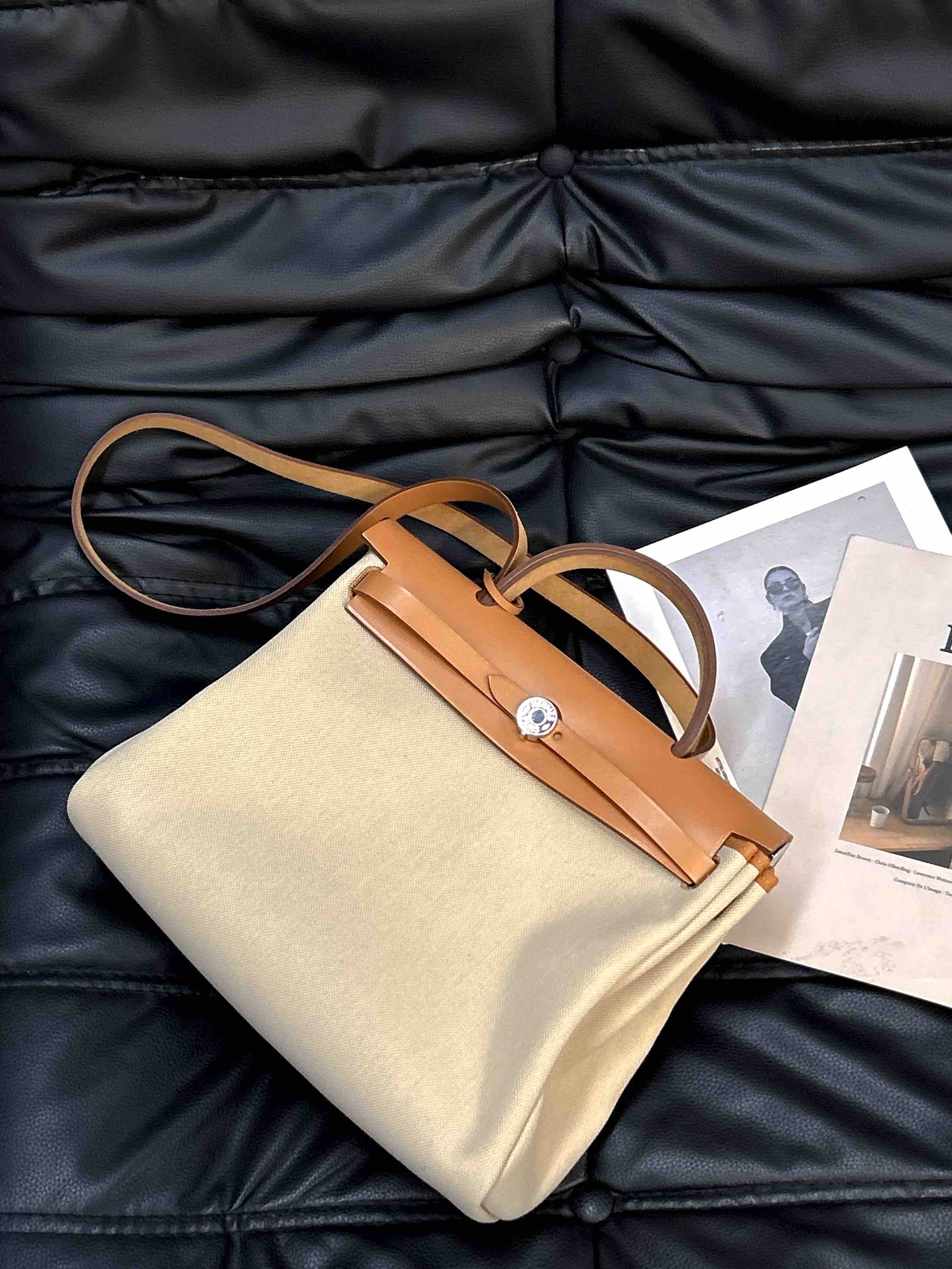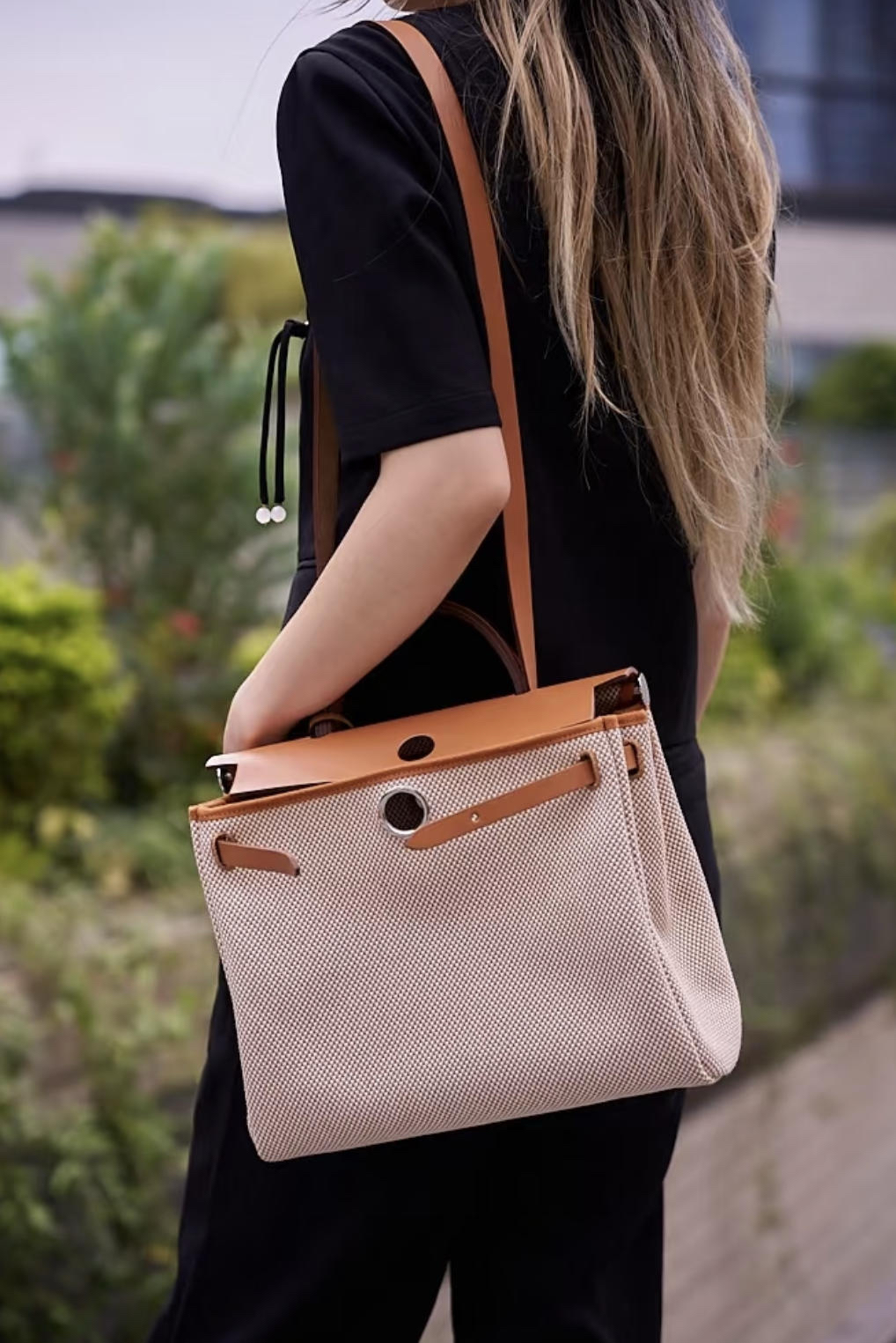爱马仕 棕色 帆布拼皮 herbag31 斜挎包