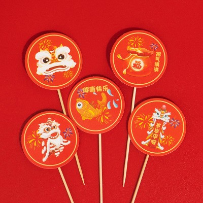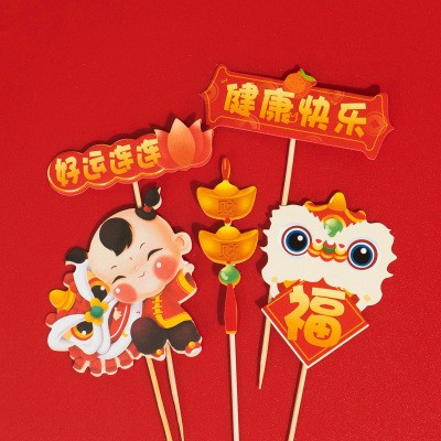 中式周岁插件 新年双人舞狮糖葫芦插件 快乐抓周中国风福袋插件套装