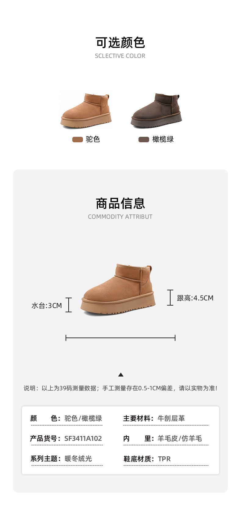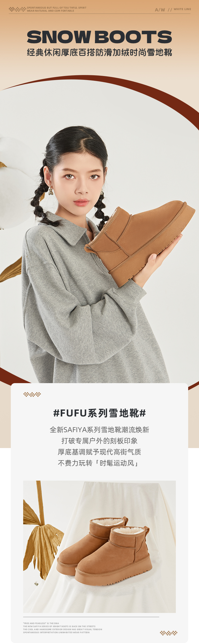 Safiya/索菲娅2023冬季 经典休闲厚底百搭防滑加绒时尚雪地靴 SF3411A102