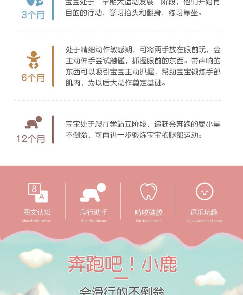 Z2078滑行小鹿不倒翁 粉色/咖啡色/蓝色