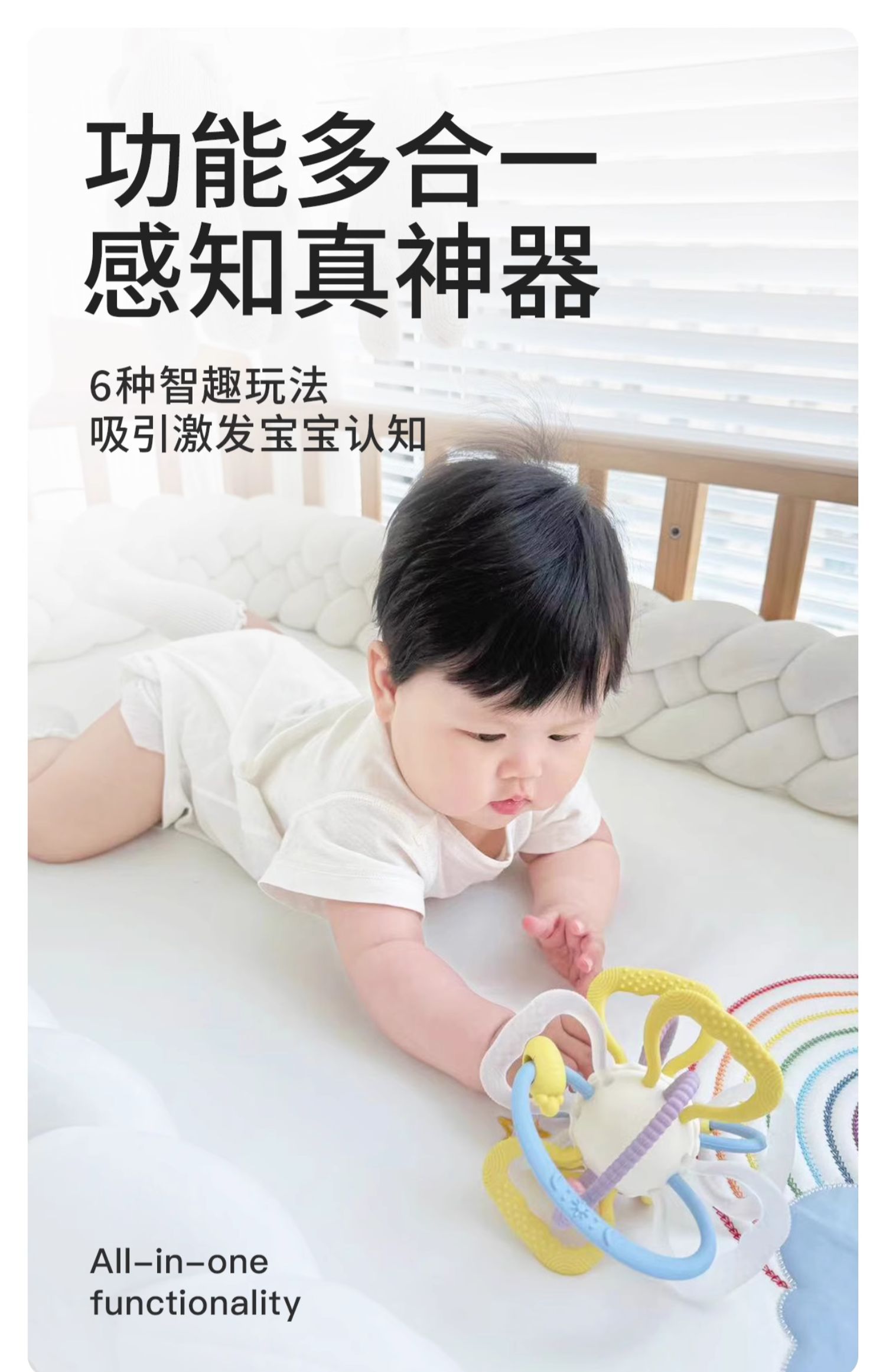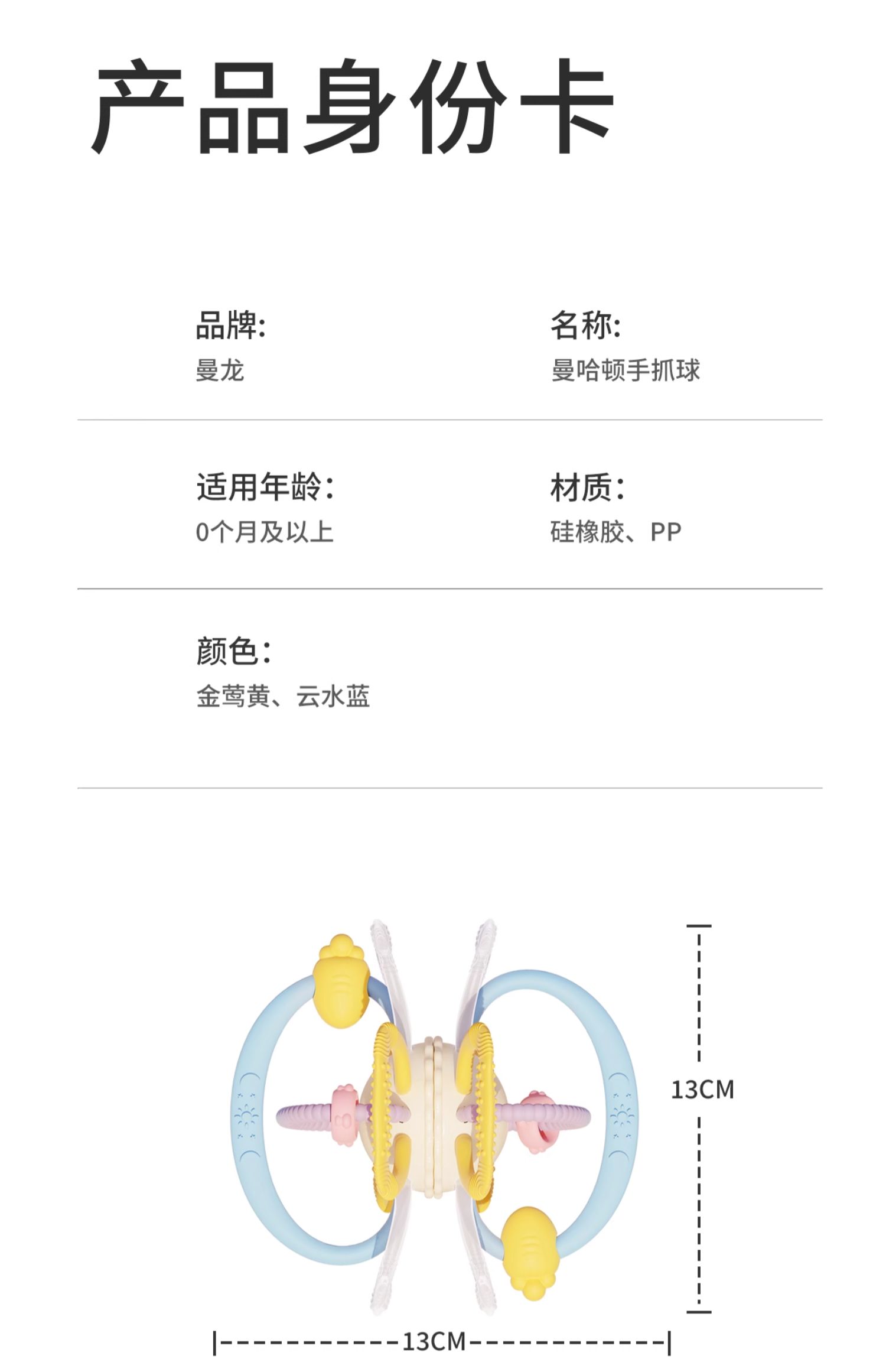 *曼龙mloong曼哈顿球婴儿玩具手抓球硅胶可咬牙胶新生儿磨牙手摇铃防吃手