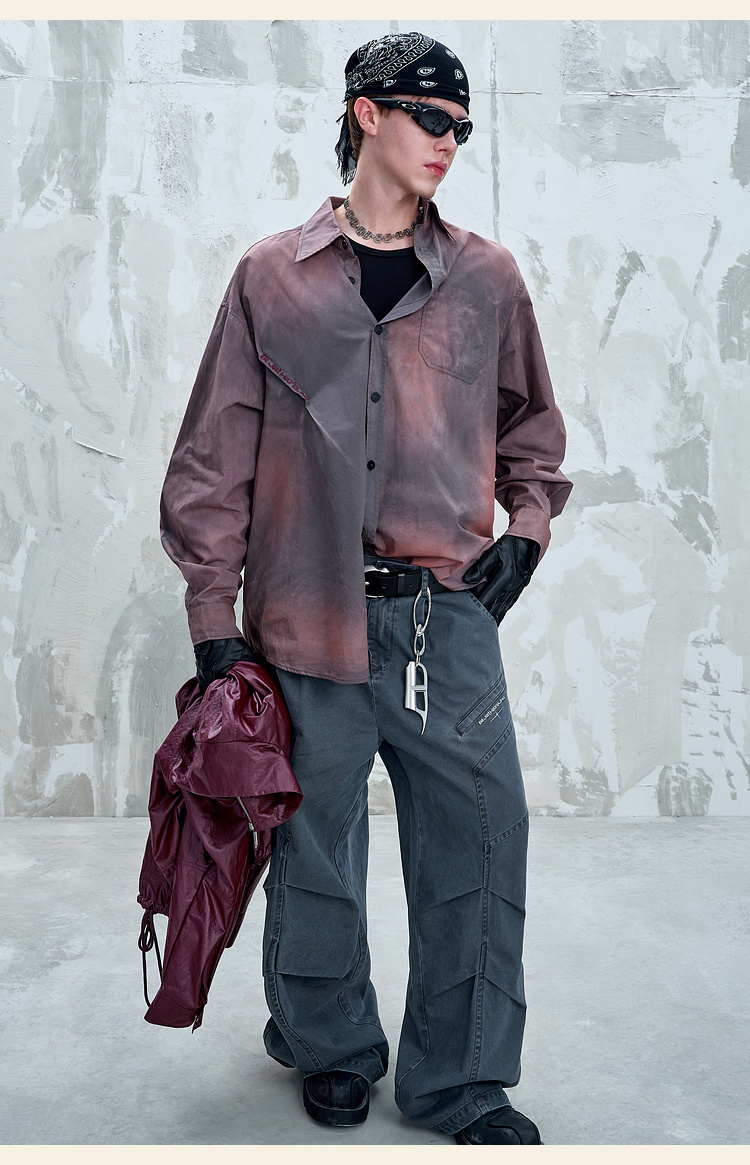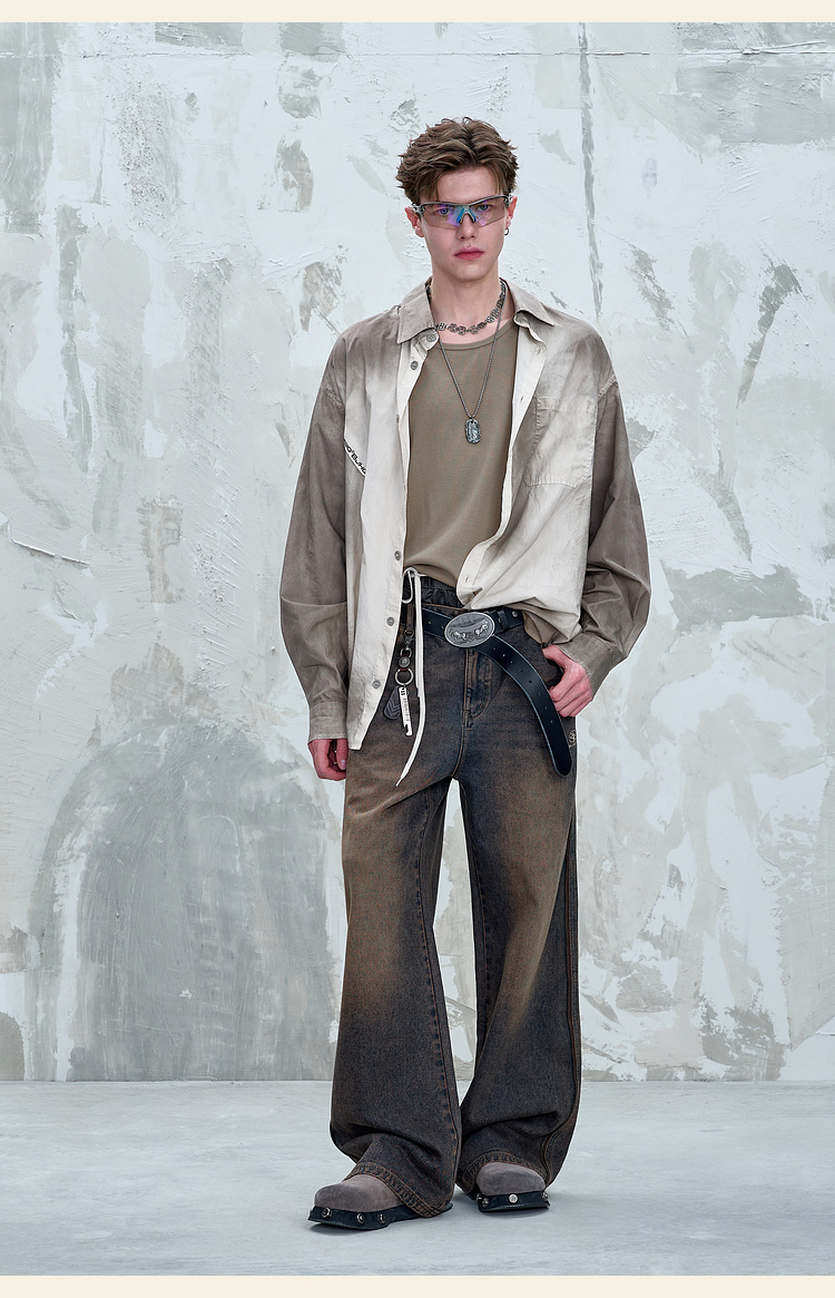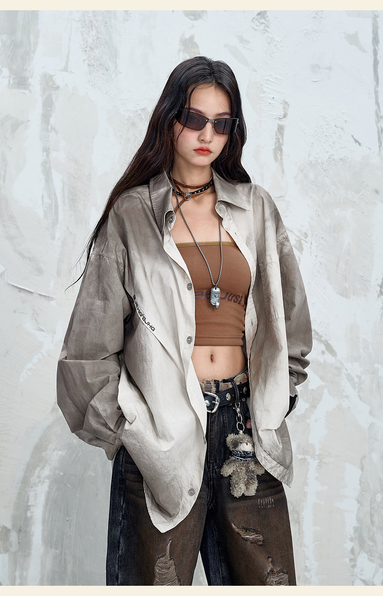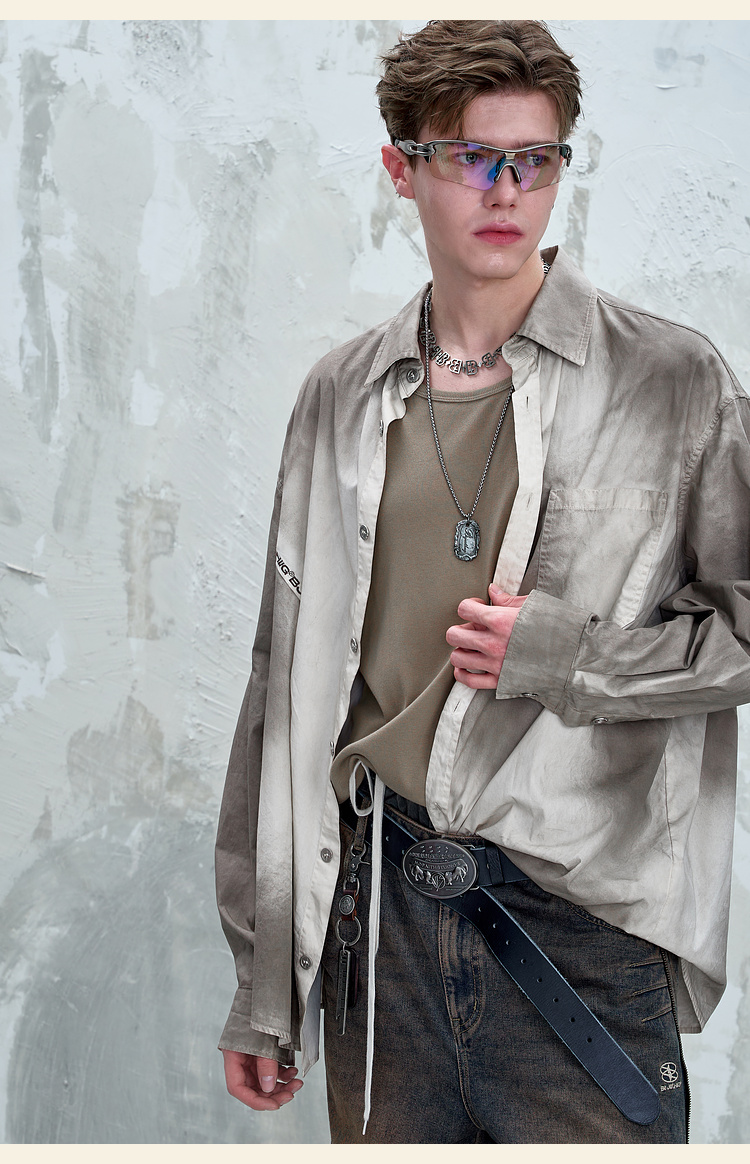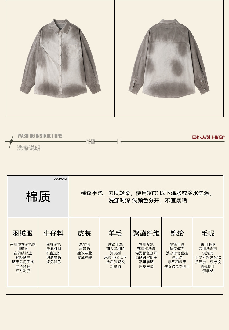 BJHG不计后果 美式复古衬衫男款秋季水洗做旧街头纯棉衬衣外套女