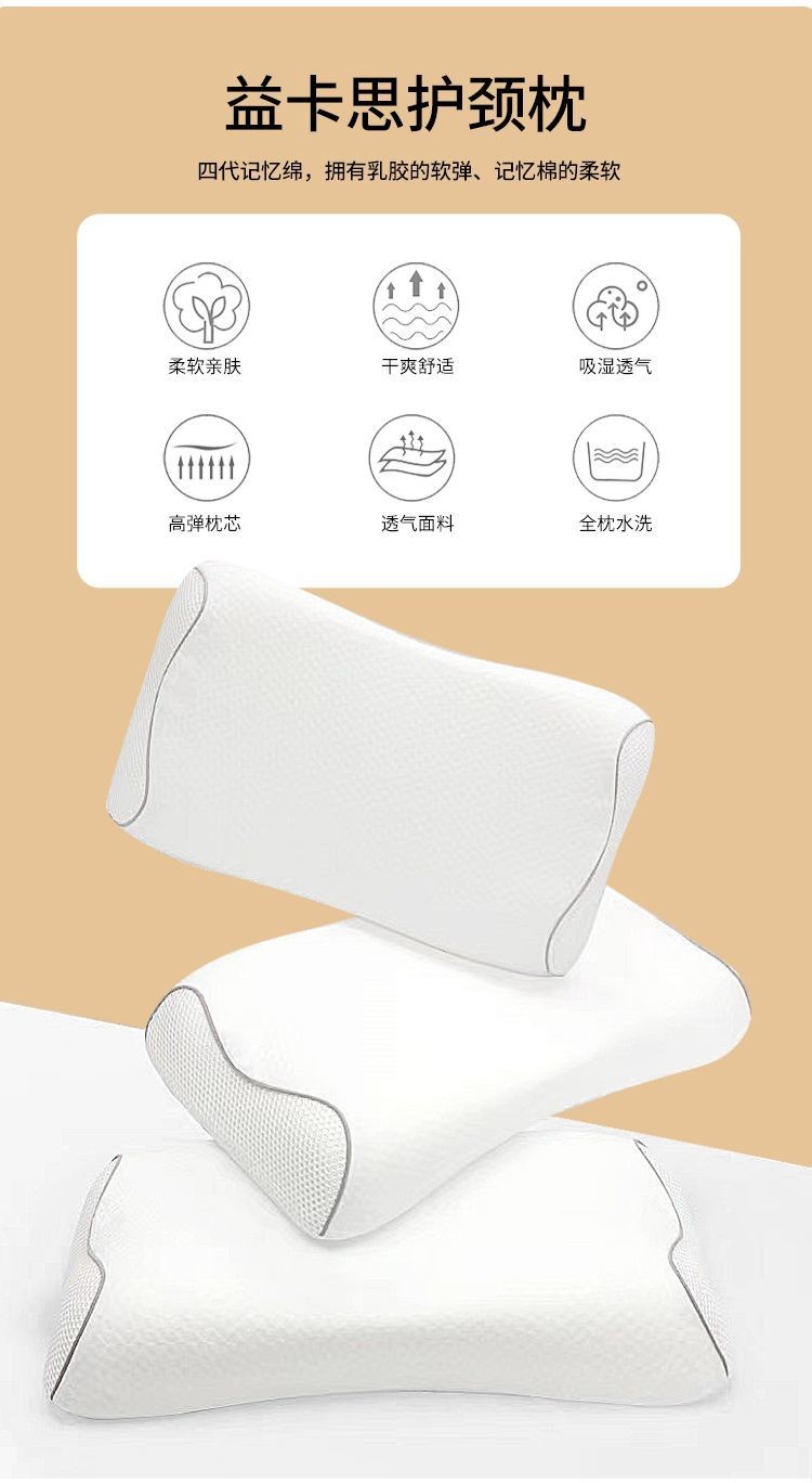 益卡思水洗记忆棉零压力护颈助睡眠大童成人蝶形枕可拆洗不变形