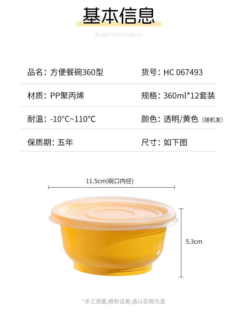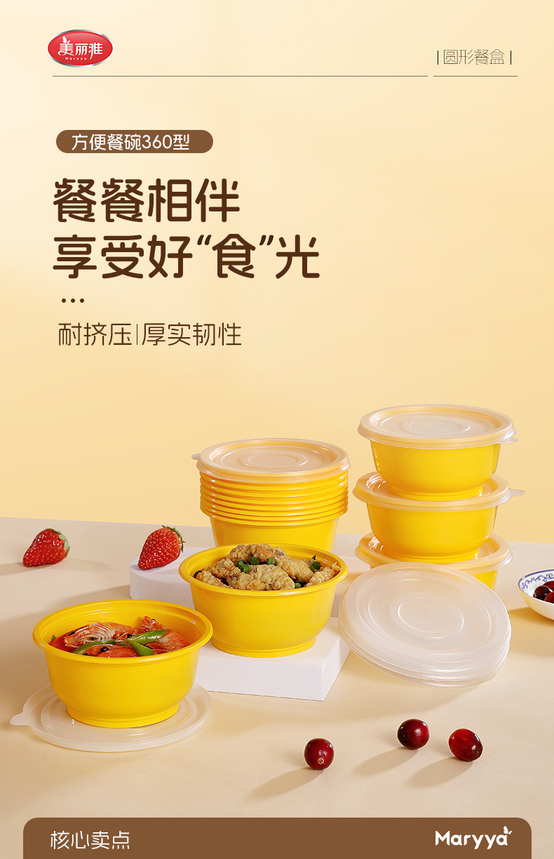 【批发】美丽雅方便餐盒360ML圆型餐盒(12个入)
