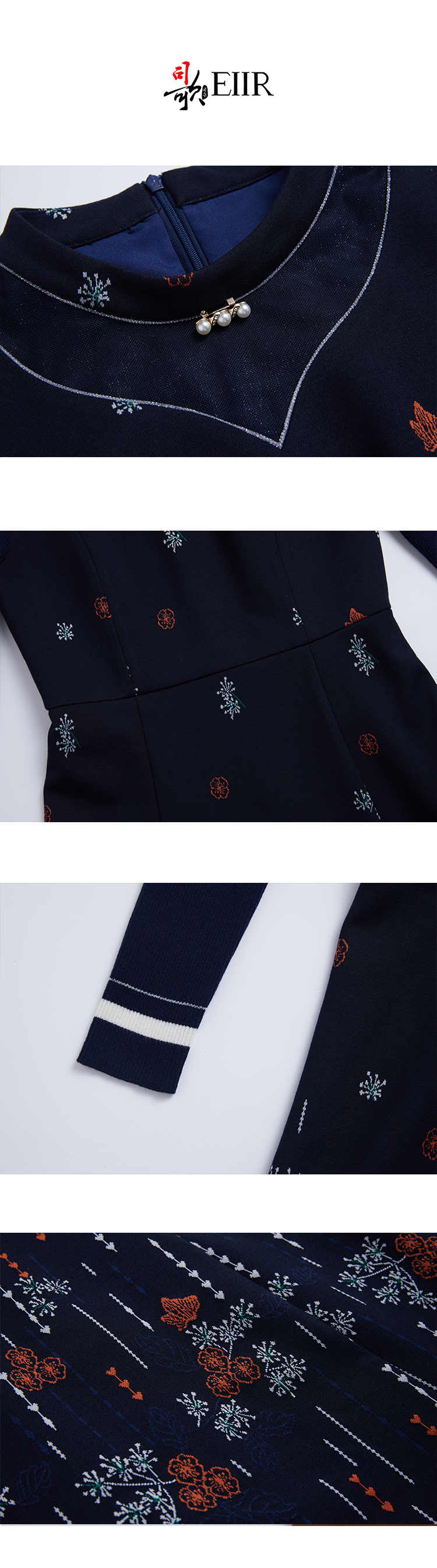司歌刺绣针织弹力拼接毛织长袖显瘦复古中式A881046