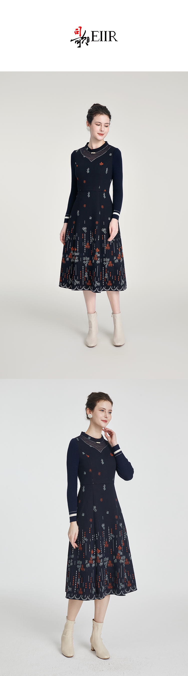 司歌针织弹力复古优雅冬连衣裙长袖A881010