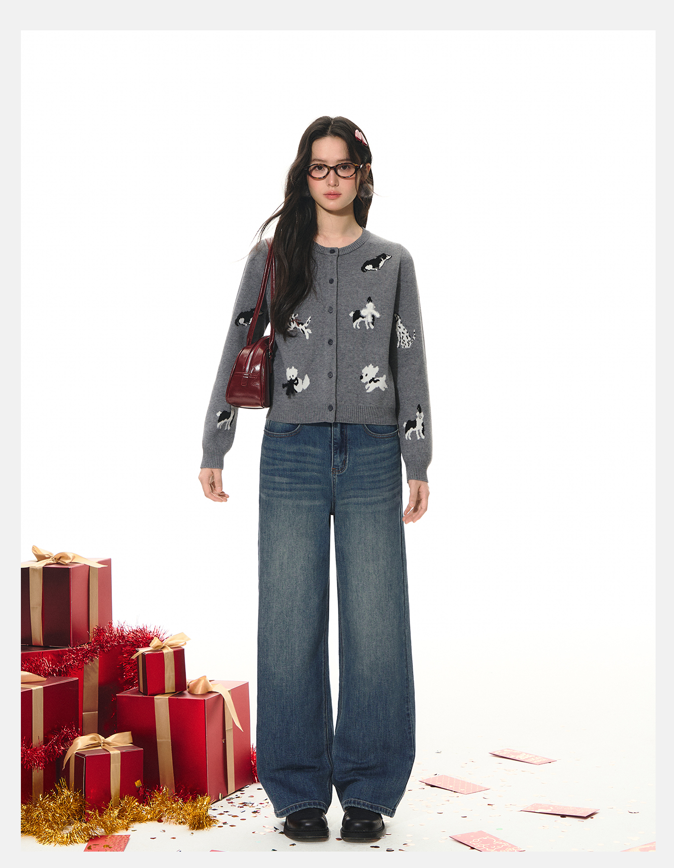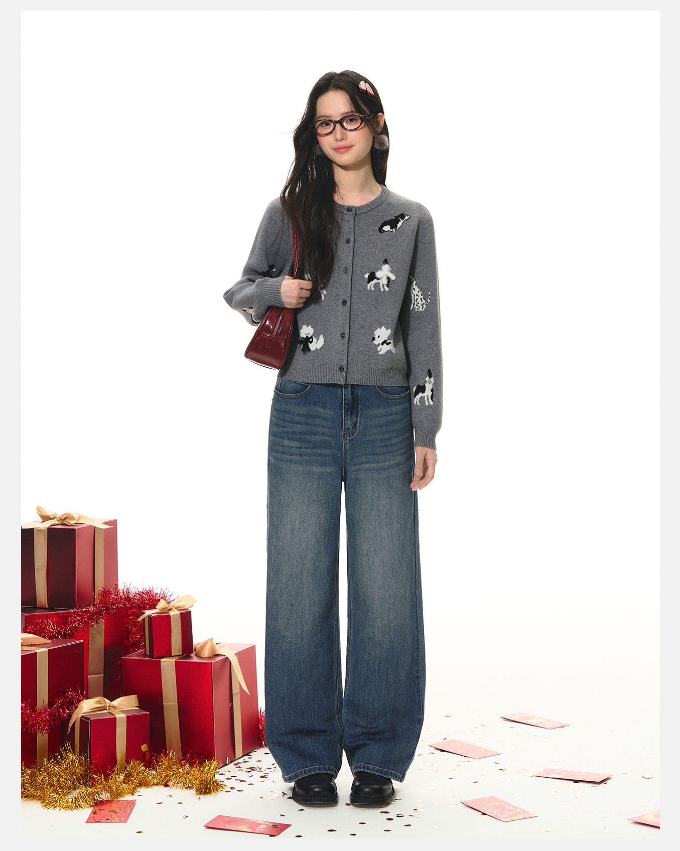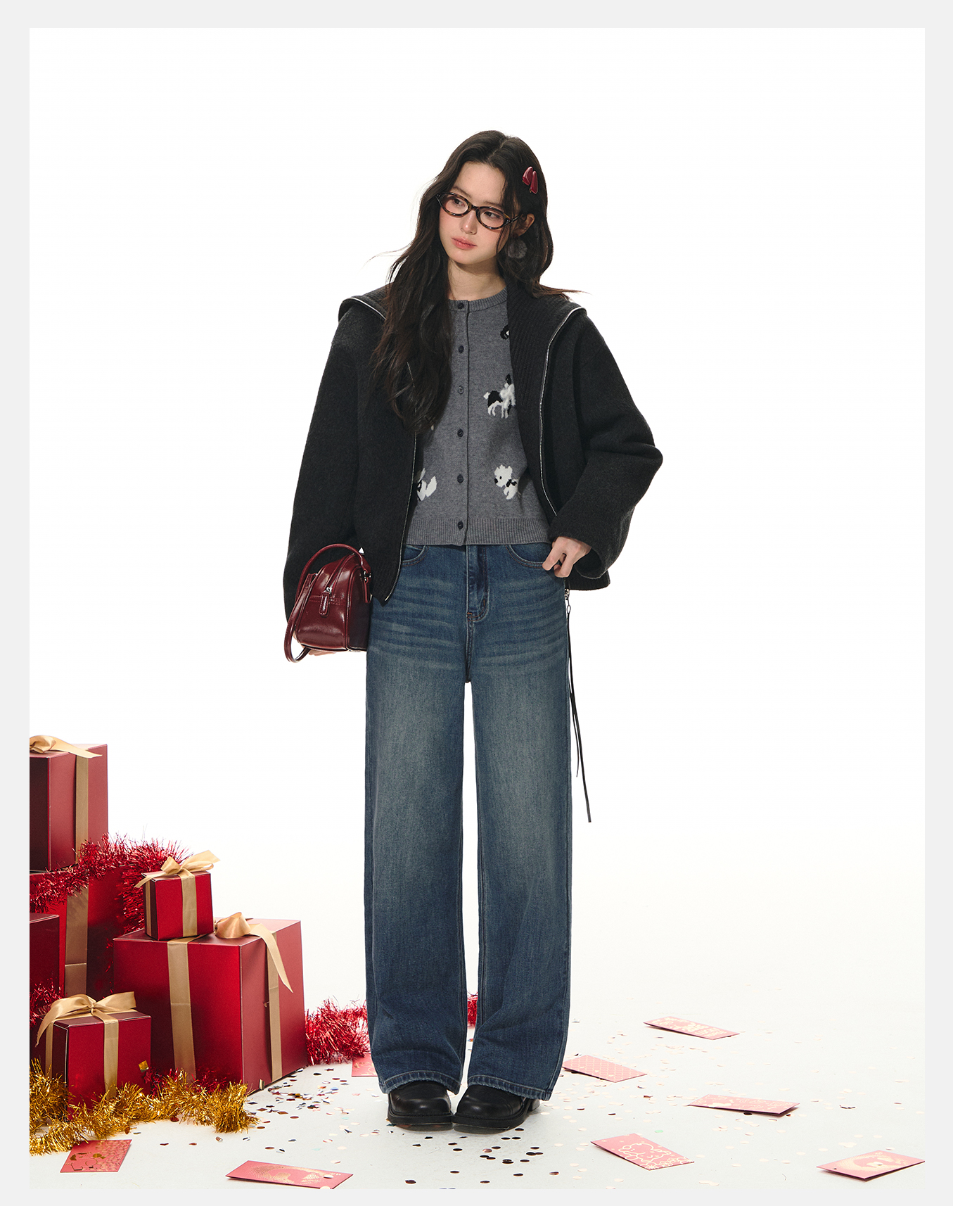 P&X设计师女装2026春季阔腿复古时尚牛仔长裤 826110088 蓝色