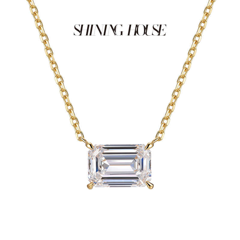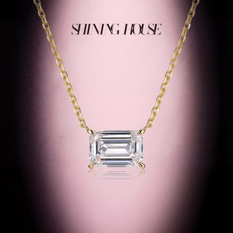 【预售】ShiningHouse[培育] 18k金钻石项链 祖母绿形1克拉钻人工真钻人造钻石K金项链可调节简约四爪钻石项链悦己送礼臻选【此商品不支持7天无理由退货退款】预计3日发货