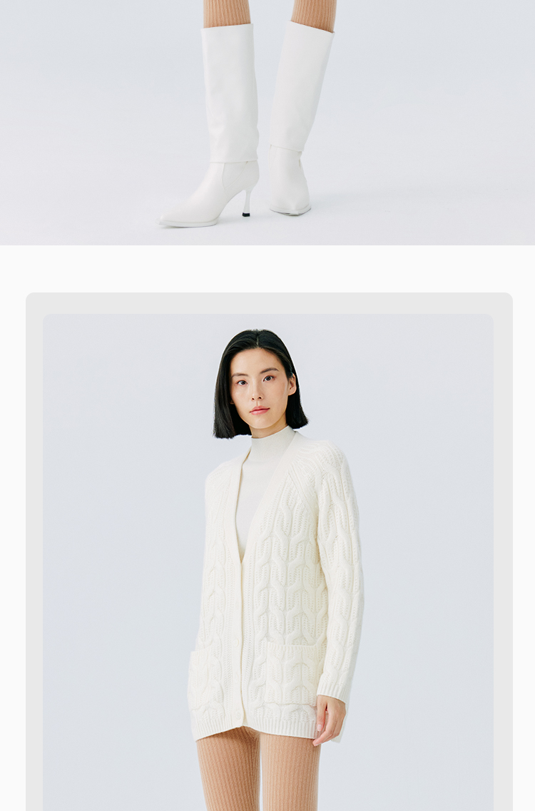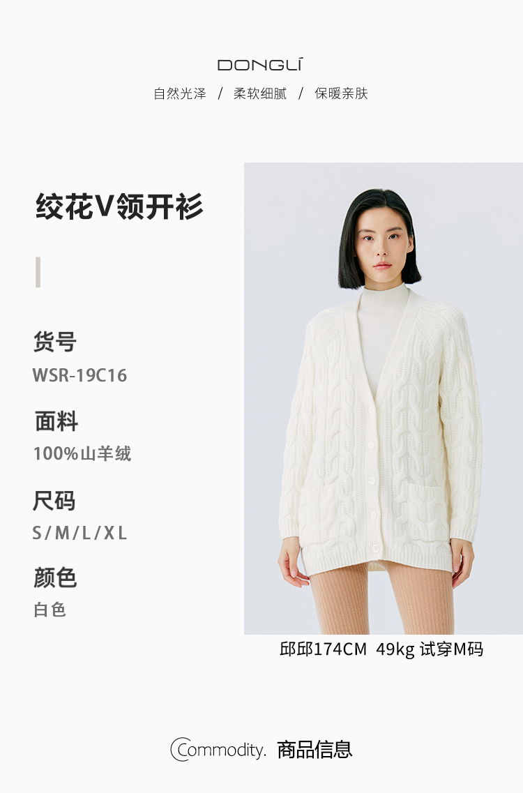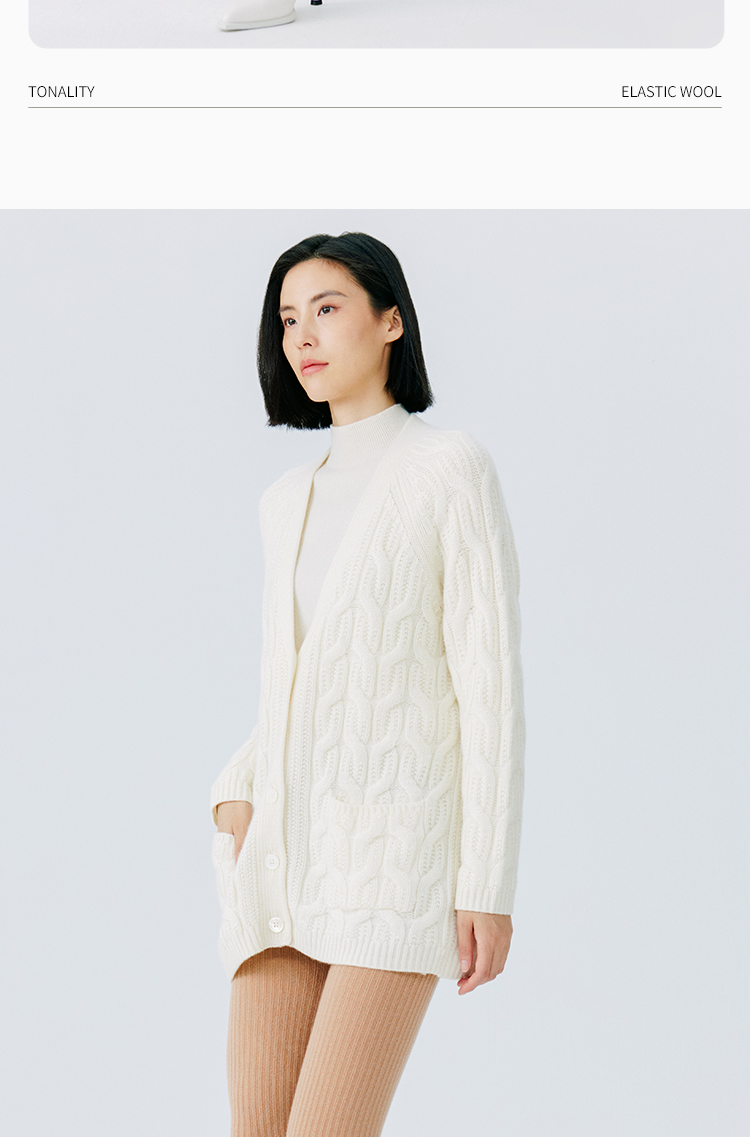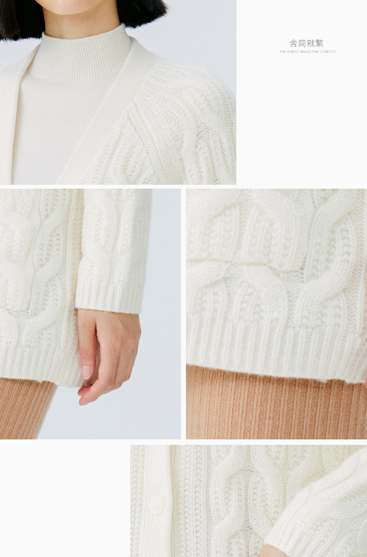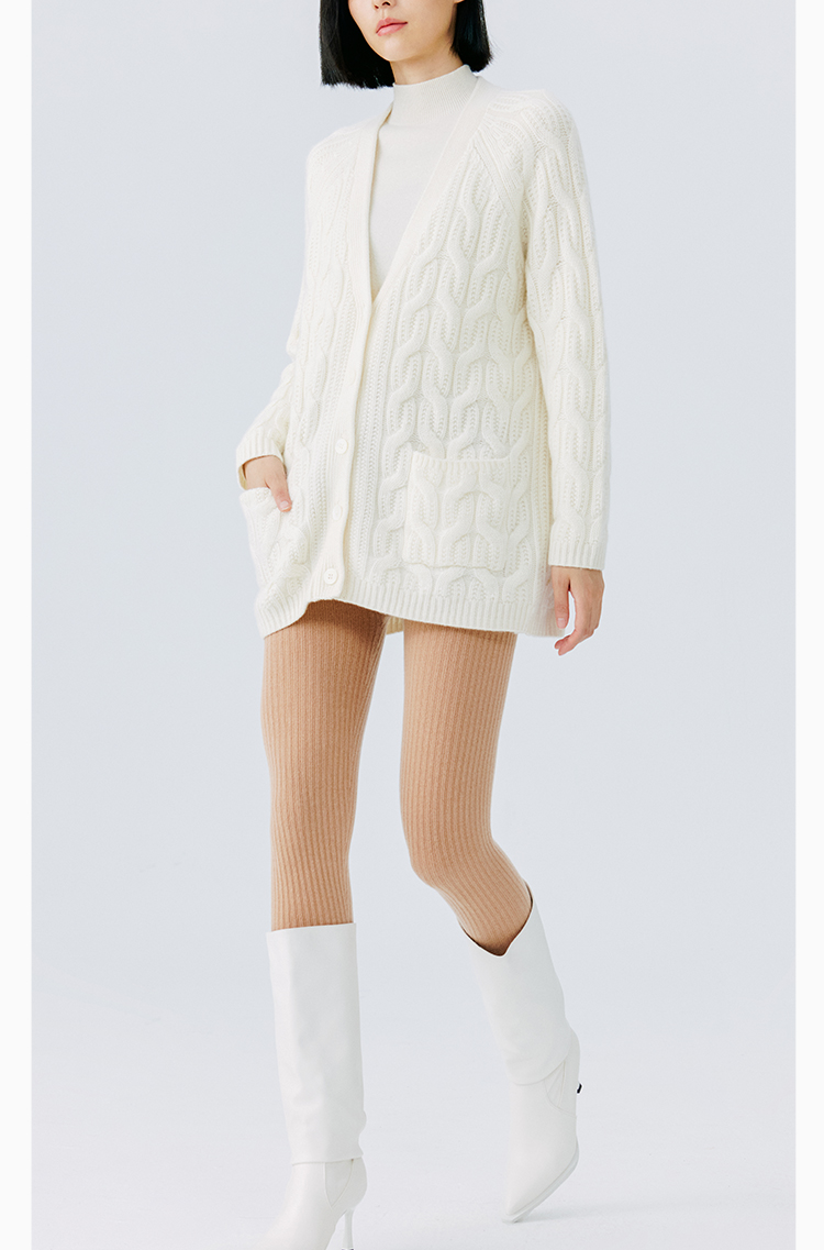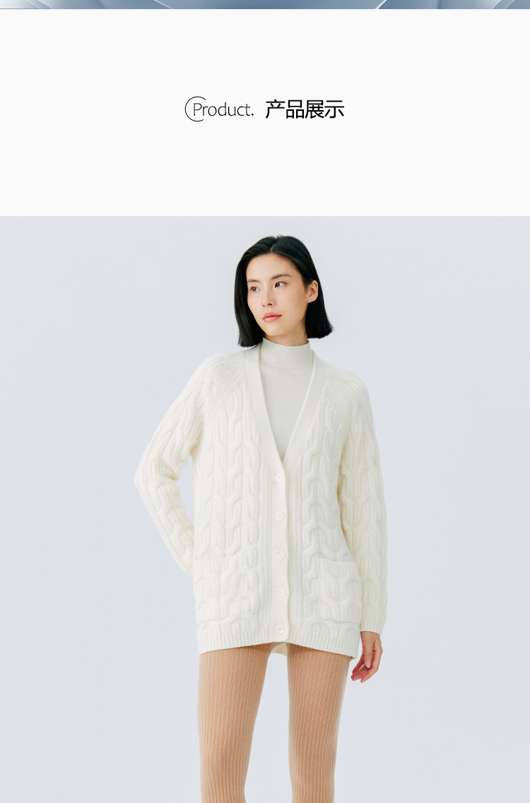 东黎 • 山羊绒女士秋冬季V领绞花宽松休闲开衫 19C16