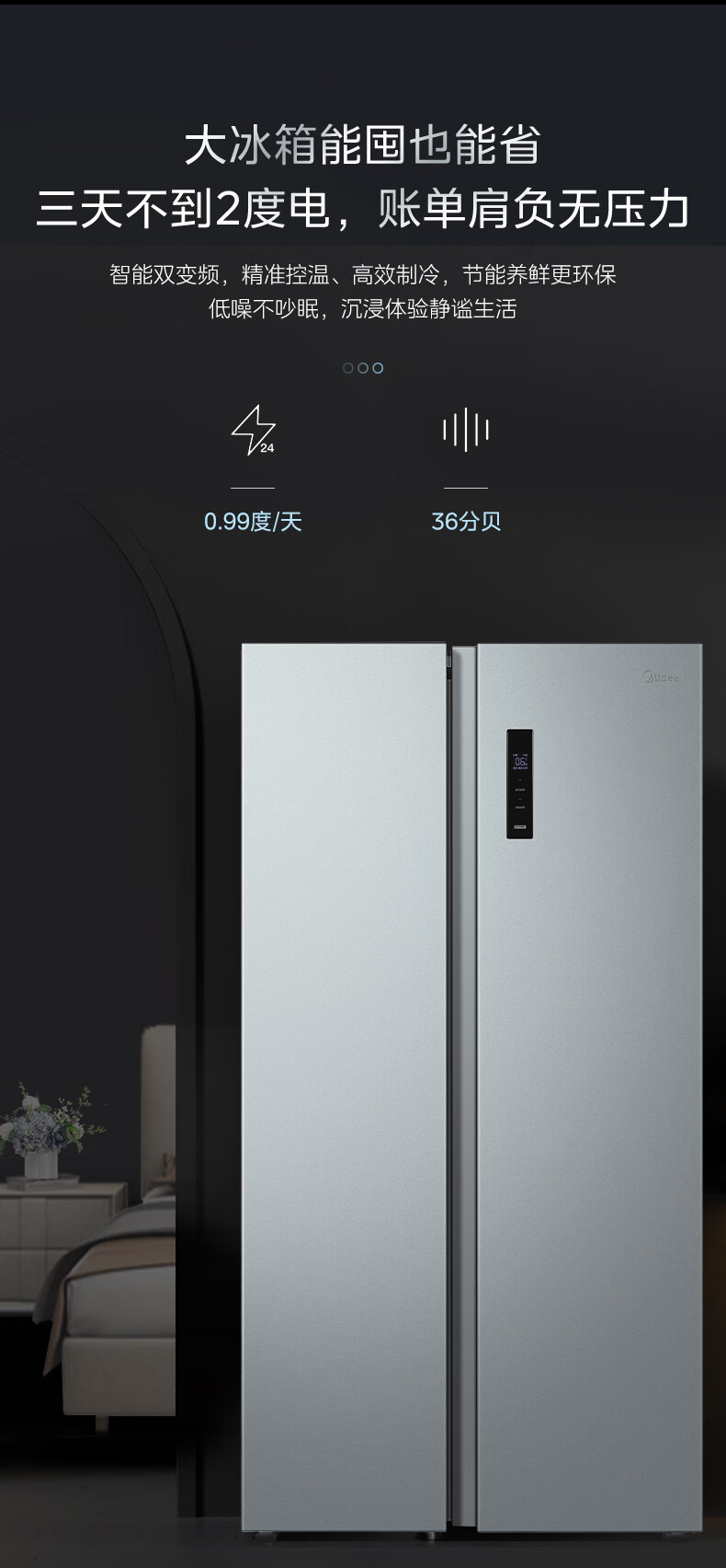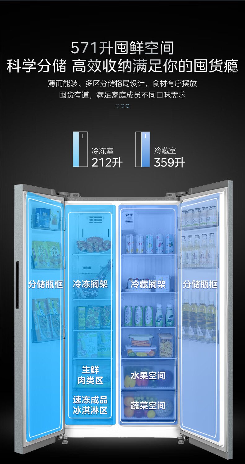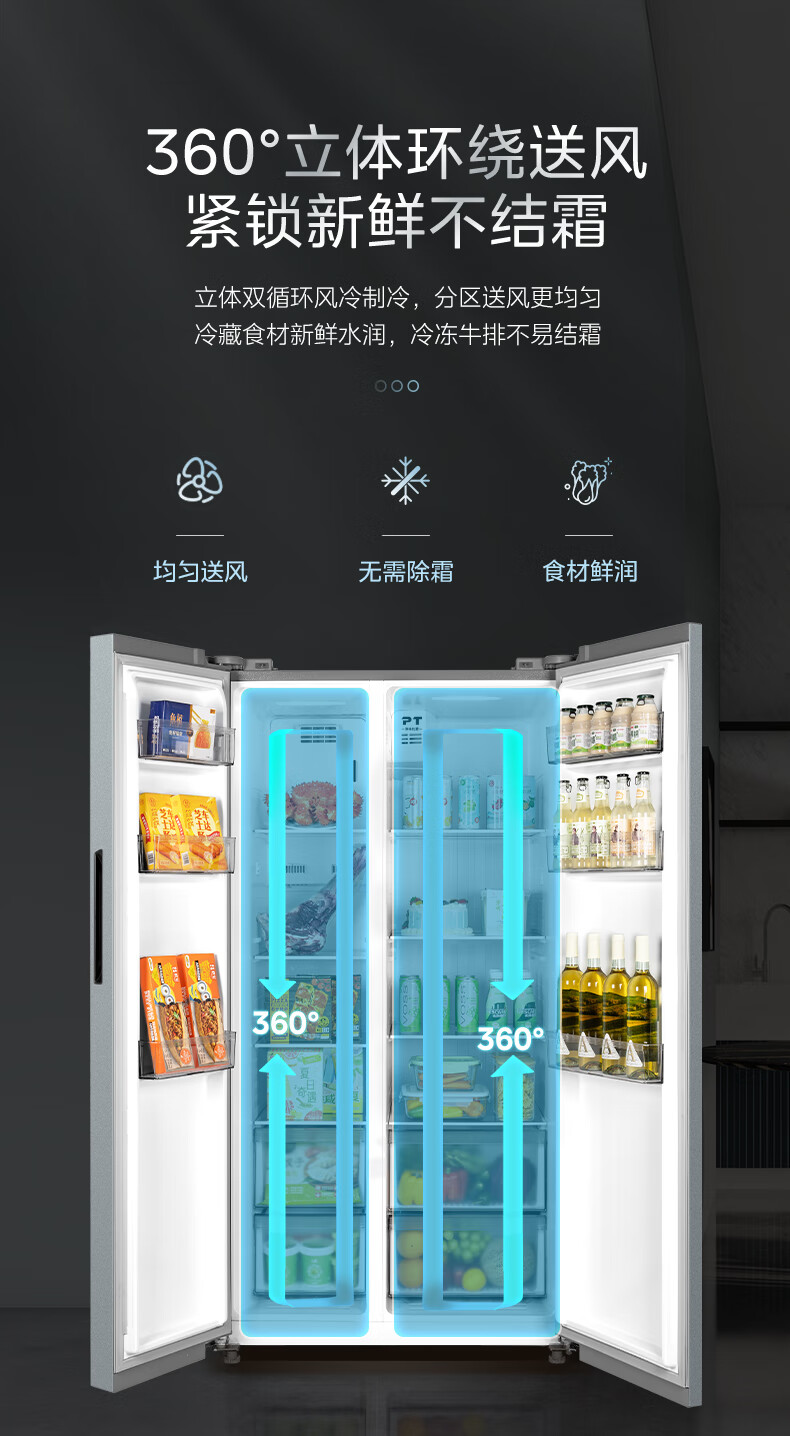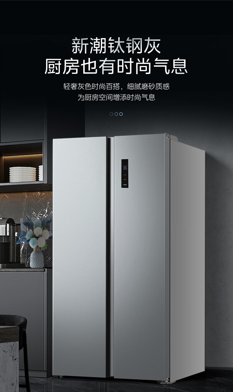 美的Midea/ BCD571WKPM(E)双开门冷无无霜钛钢灰星烁 对开冰箱 美的571升风冷无霜【粤湾】【双十一】