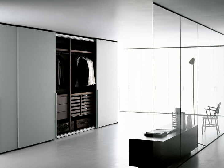 在选择用推拉门闭合的衣柜时,如果在较小的空间内,最好是采用实用且易于打开的方式从可用空间中更好地获取更多的空间。