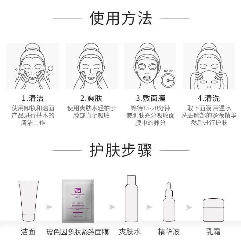 【百植萃】百植萃玻色因多肽紧致面膜补水保湿紧致肌肤提亮肤色舒缓修护 玻色因紧致面膜(整盒)