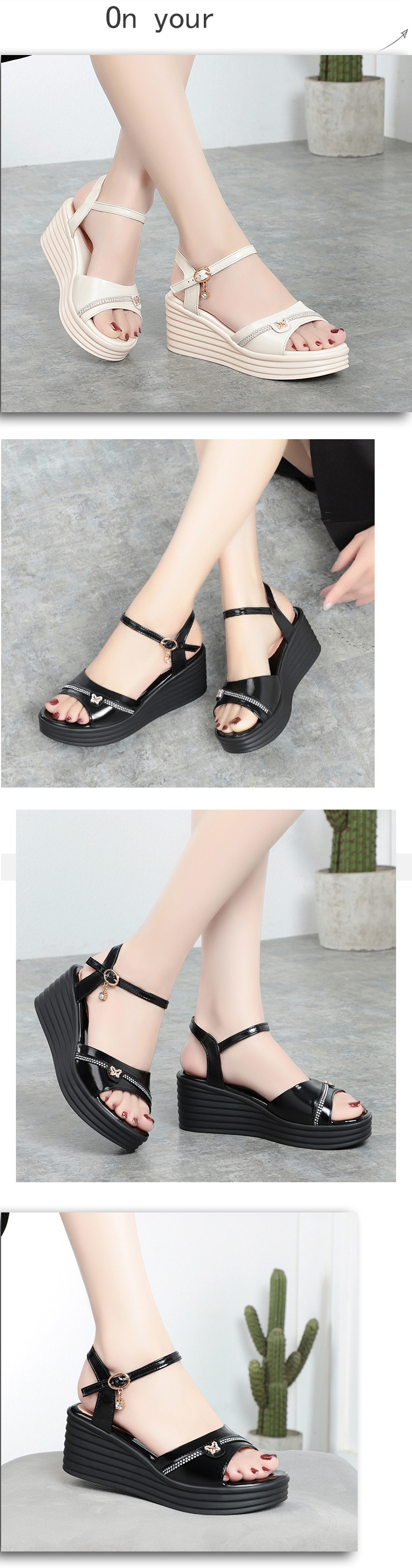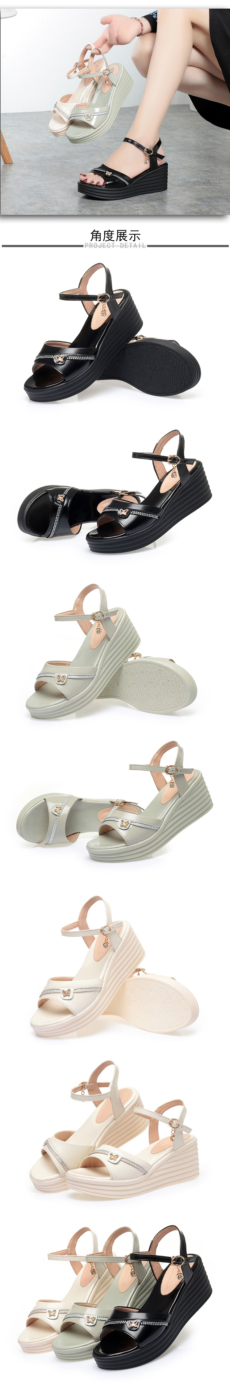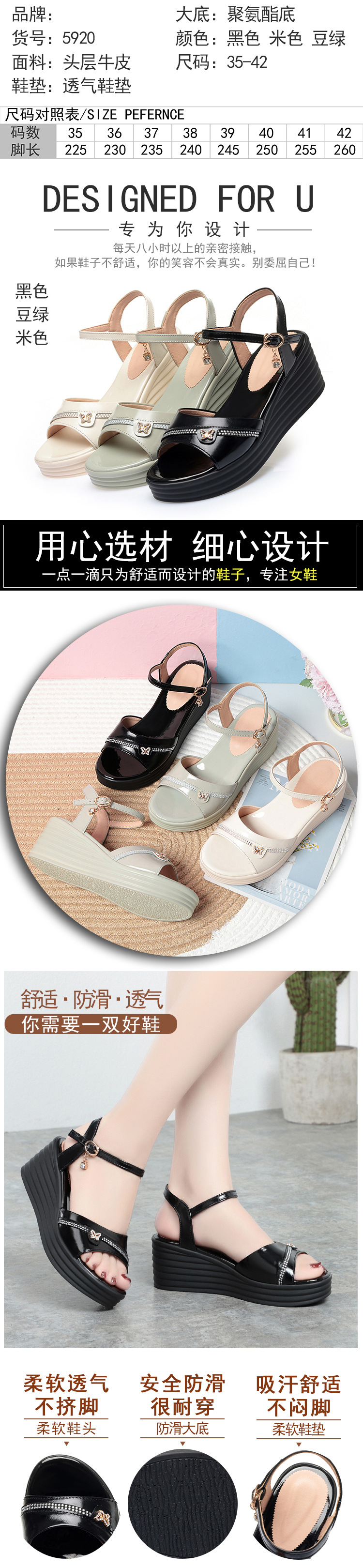 2022夏季新款坡跟松糕鞋,女中跟凉鞋厚底高跟牛皮防水台凉鞋 KQ-DM5920