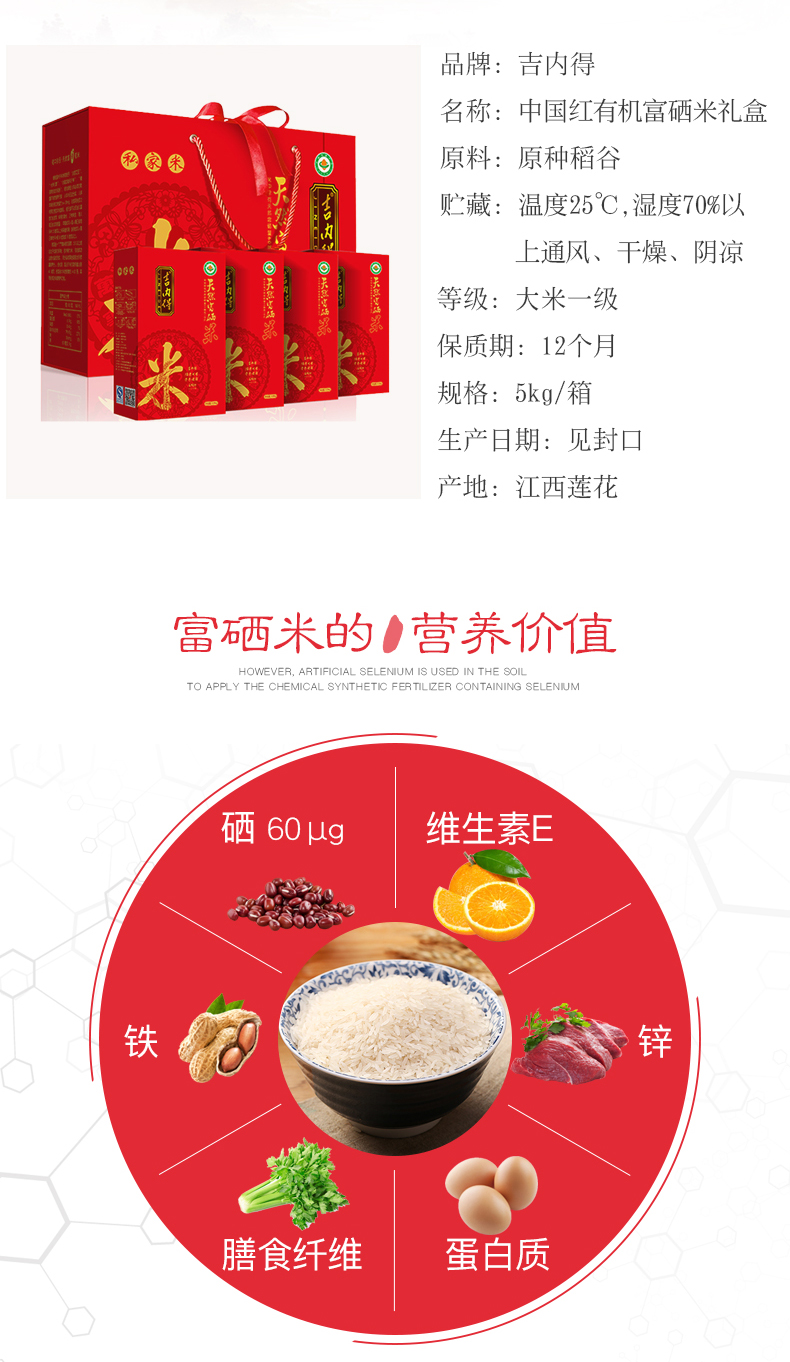 吉内得天然富硒米(有机食品)中国红礼盒5kg/盒