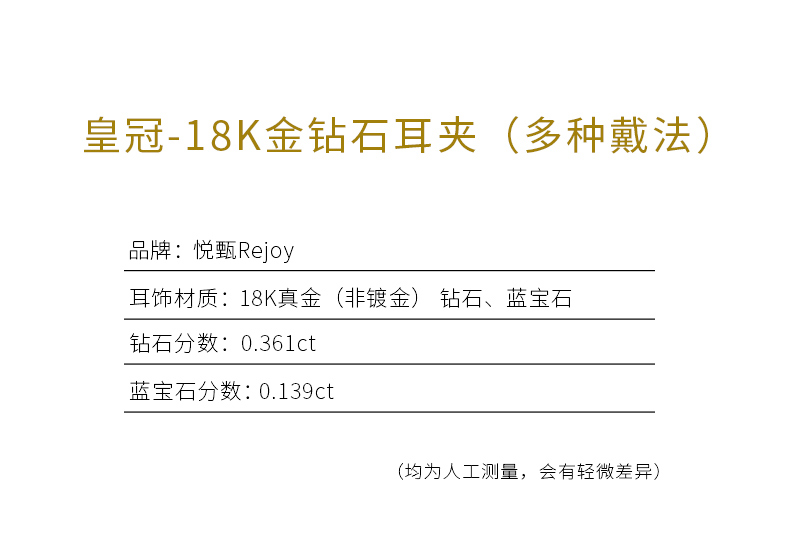 【天猫同款】18k金两戴款钻石耳夹 皇冠