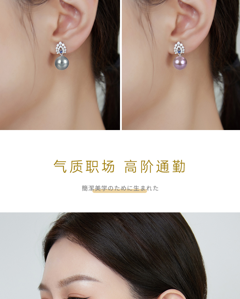 【日本溯源之旅】14k金 经典圆形无边镶马贝 15mm青粉光 简约优雅 弹力双夹 6.4g
